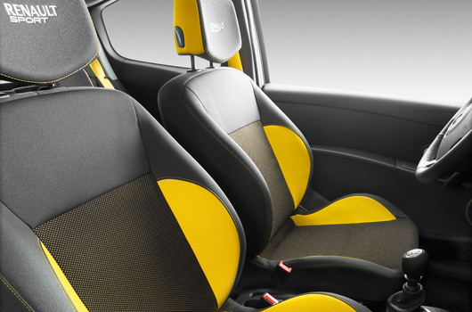 As with all the models developed by Renault Sport Technologies, Renault Sport badging is visible inside the cabin on the rev-counter background, sills and front seats.