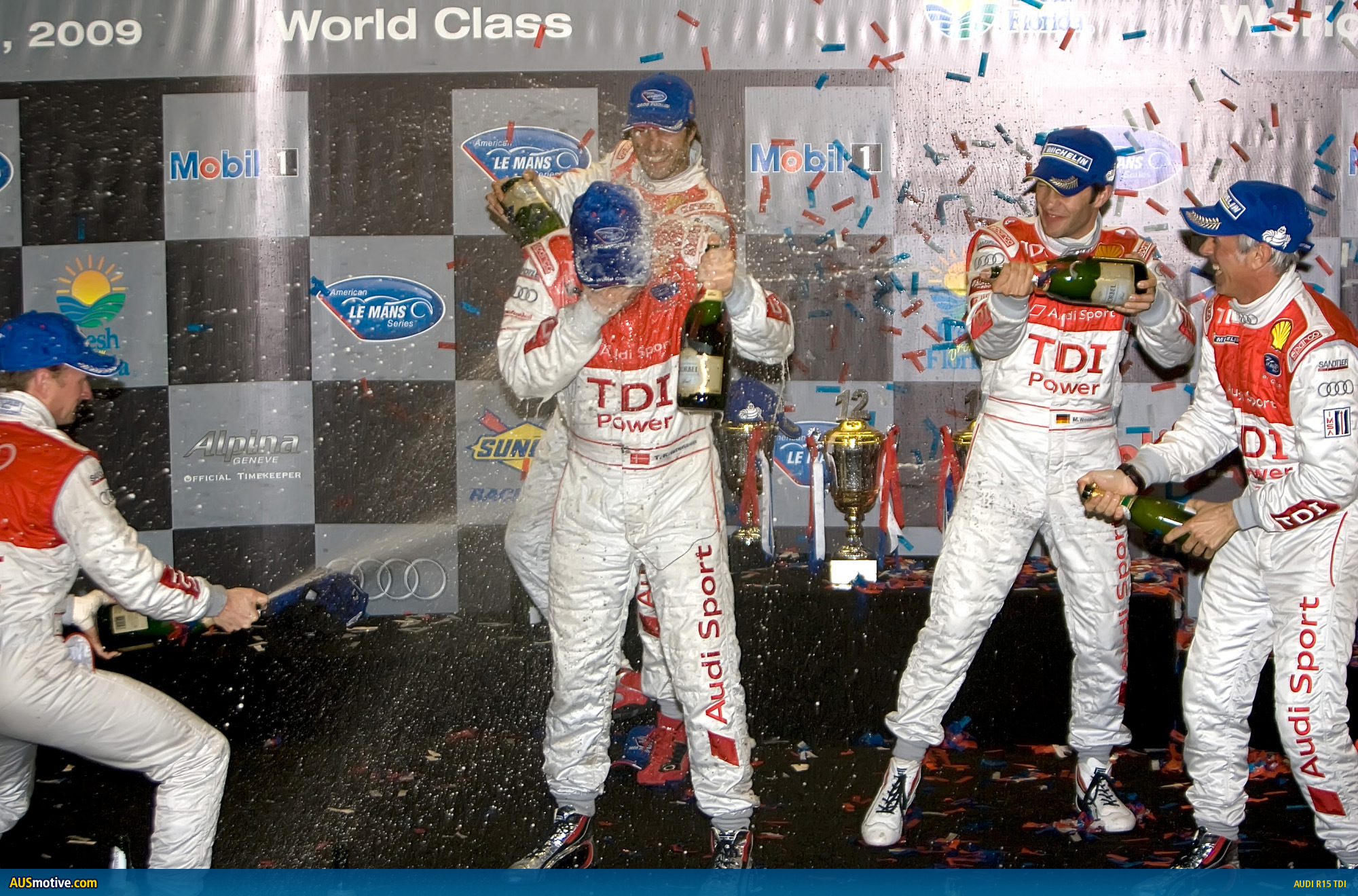 Tom Kristensen (Audi R15 TDI #2): “It’s an absolutely fantastic feeling. Wow, what a race – the fastest ever race at Sebring covering a record distance. Winning with such a young car which had completed low testing miles in dry weather before we got here is amazing. I won here on the debut of the R8, then the R10 TDI and now the R15 TDI – thanks to the know how and experience of the crew. Everyone at Audi Sport, and all six drivers here at Sebring, have worked very hard to be in a position to beat Peugeot here at this very difficult track and after an extremely hard fight. I’m proud to be a part of this team – it’s a cool feeling.â€