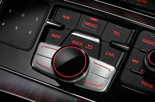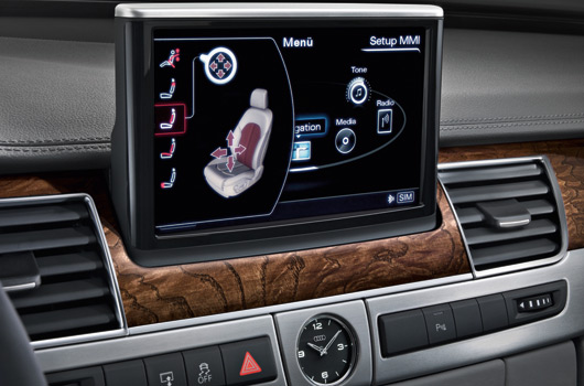 The multimedia interface (MMI) features a pioneering touchpad innovation, allowing the driver to control functions such as entering a navigation destination by tracing the letters on the pad.