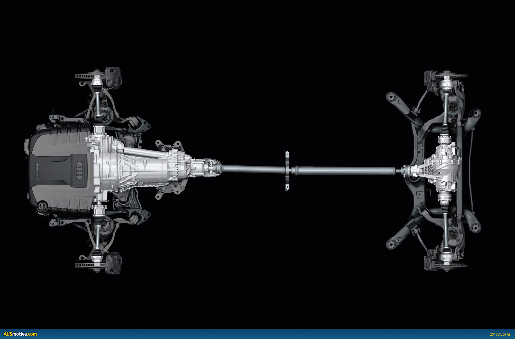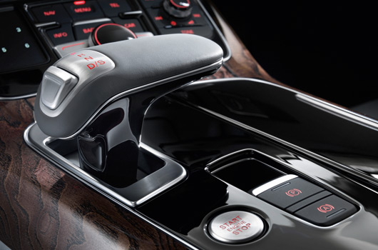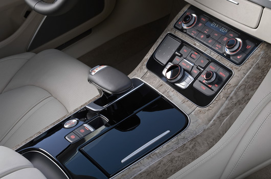 An electronically controlled eight speed tiptronic transmission makes its debut on the new Audi A8. Operated by a gear selector level and rocker switches at the steering wheel, this new standard transmission aids in increasing fuel efficiency with its gears finely graduated over a large range. The quattro permanent all-wheel drive system offers a typical sporty feel with a sport differential available which dynamically distributes forces between the rear wheels; on the A8 4.2 TDI this feature is standard.
