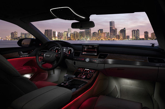 Revealing the new luxury model in Miami, on the eve of two of the world’s leading design festivals, the new Audi A8 is regarded a technical work of art. With its body made from aluminium Audi Space Frame (ASF), it weighs almost 40% less than a comparable steel structure. The interior features a spacious design and uncompromising high-quality workmanship, including electrically-adjustable rear passenger seats.