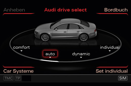 - Audi drive select driving dynamic system including standard adaptive air suspension and adaptive damping, optional dynamic steering
