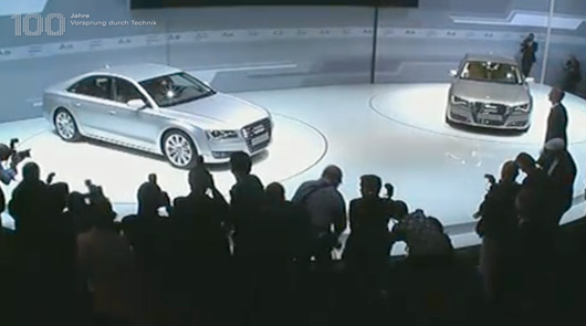 Audi have just completed the launch of their new A8 saloon which took place in Miami. The pictures you see here were snapped from the A8’s live online broadcast. More details and official photos as they become available.