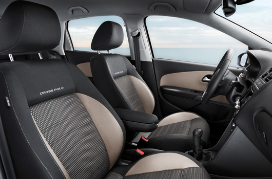 The high-end interior of the CrossPolo is a fitting match for the all-terrain look of the exterior. Here it is primarily the two-tone fabrics of the sport seats, the rear bench and the door trim that create a friendly and youthful ambiance. Up to four different colour trims are available, depending on the exterior colour. While the outer areas of the seats are always in anthracite, customers can choose from the colours “Hot Orangeâ€, “Orangeâ€, “Latte Macchiato†and “Grey†for the inner seat panels and middle sections of the door trim panels. On seat contact surfaces for the back and legs the fabrics (“Dimension†pattern) all have a black webbed structure, making them more durable. The “CrossPolo†signature is embroidered into the backrests of the front seats.