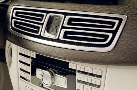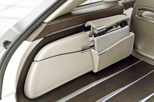 Perfection and attention to detail also apply to the trim elements. While on the exterior they are polished to a high-sheen finish, in the interior they feature a matt finish. A total of seven manual processes are necessary – from grinding to polishing – to transform the components, which are milled completely from aluminium, into their final decorative form. The matt finish of the interior trim has also served as inspiration for the metallic-silver leather on the seats, door centre panels and bags in the luggage compartment. The deep-pile carpet in the footwell – finished in porcelain colour – is a luxurious material used by Maybach-Manufaktur. The light-coloured roof liner made of silk cloth adds the finishing touch to the impression of comfortable elegance in the interior.