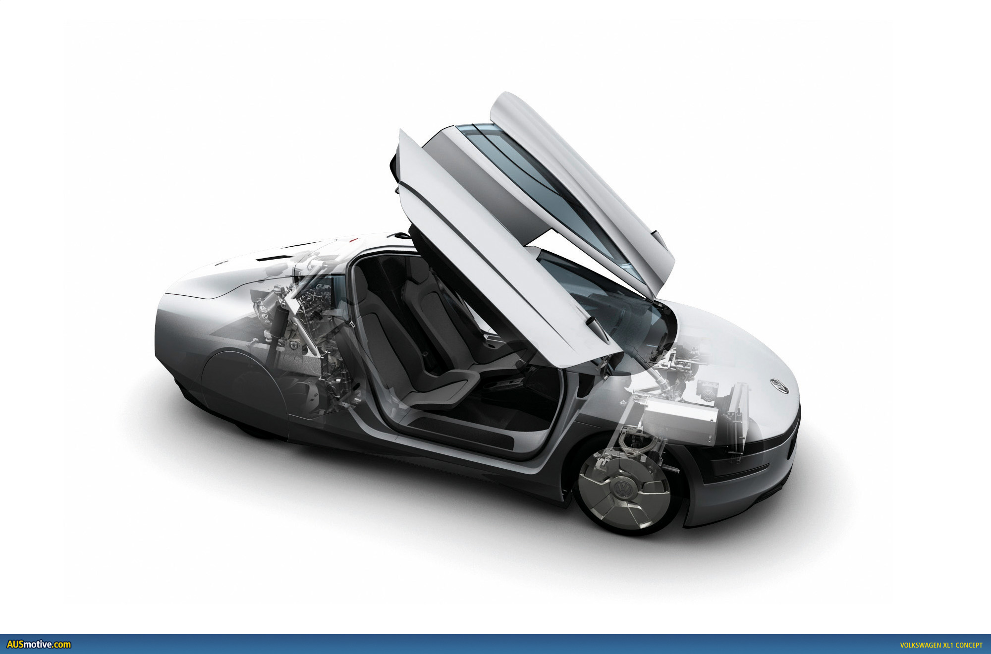 The XL1 is the latest iteration of the “1 litre” car first premiered by Ferdinand Piech back in 2002. In 2009 we also saw the Volkswagen L1. Where the XL1 differs from those two is in its seating arrangement. The earlier concepts featured inline seating for two, whereas the XL1 uses a more traditional layout to seat two abreast.