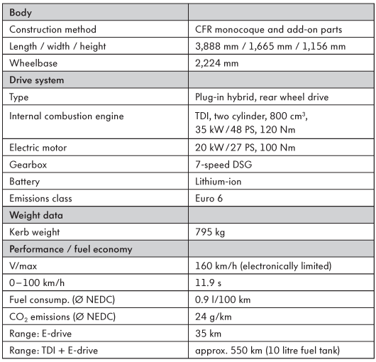 Volkswagen XL1 concept – Technical data