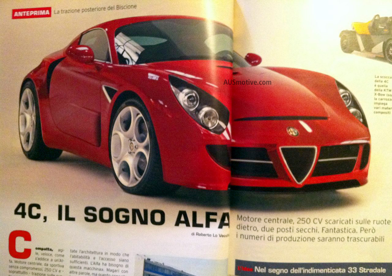 The caption to this pic translates as “4C, the dream Alfa.” Even with a dodgy fold in the middle of the pic, the Geneva-bound 4C GTA concept car looks the business. As far as we can tell this image was first posted to the AlfaMitoClub.it forum yesterday.