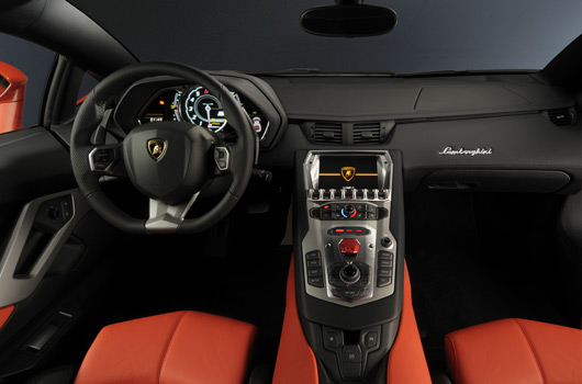 The Aventador’s spacious interior combines the fine exclusivity of premium materials and perfect Italian craftsmanship with state-of-the-art technology and generous equipment. The red switch cover on the broad center tunnel encloses the start button used to awaken the twelve-cylinder. The interior is dominated by a next-generation dashboard – as in a modern airplane, the instruments are presented on a TFT-LCD screen using innovative display concepts. A second screen is dedicated to the standard-fit multimedia and navigation system.