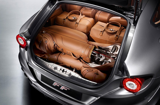 Even the FFs’ cabin exudes a unique allure. It is extremely comfortable and enticing with elegant, sophisticated trim and detailing, creating an impression of subtle exclusivity. The FF has the best cabin space and occupant comfort in the segment, thanks to four generous body-hugging seats that ensure each of the FF’s four occupants will enjoy the same standards of ride comfort and access to the in-car accessories. The boot size is unprecedented too for this kind of car: 450 litres in normal conditions. However, it is also extremely versatile as both rear seats can fold down separately, upping its size to over 800 litres. This means, for example, that four occupants can take four standard side trolley cases, two golf bags or two children’s strollers with them.