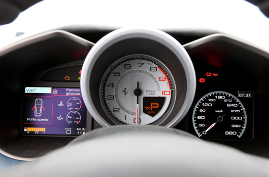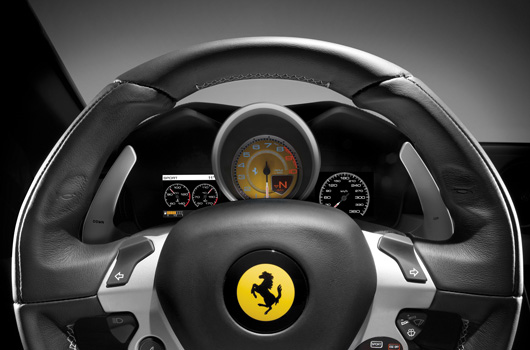 The FF’s new infotainment system is the result of an evolution of the HMI (Human Machine Interface). It features: a 6.5†high-contrast display with touch screen control; a Bluetooth connection with Audio Streaming, to allow occupants wirelessly listen to music from their own multimedia devices; a sat nav with maps and 3D views; voice command function; two USB connections; and a display with alphanumeric keypad for phone dialling. It is also fully compatible with new generation iPod/iPhone. The main functions are available either at the touch of a fingertip or through voice commands: drivers can simply order the system to make a telephone call or select a predetermined road route. The display graphics have been completely redesigned to make them superbly user- and reader-friendly also. All of which makes the FF feel very much like home. Except a little faster, of course…Just a little.