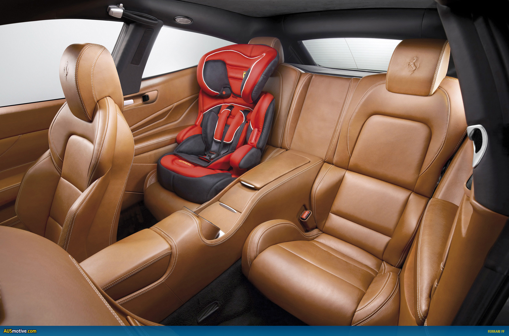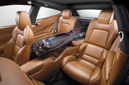 The Ferrari-patented four-wheel drive system is unique of its kind and also integrated with the new generation F1-Trac traction control developed specifically for the track. The FF is also the first and only V12 in the world to sport the seven-speed dual-clutch F1 gearbox with 20% more power output and 25% lower fuel consumption. It offers four occupants superb in-car comfort with wraparound seats and absolutely unprecedented cabin and luggage space for a car in its category.