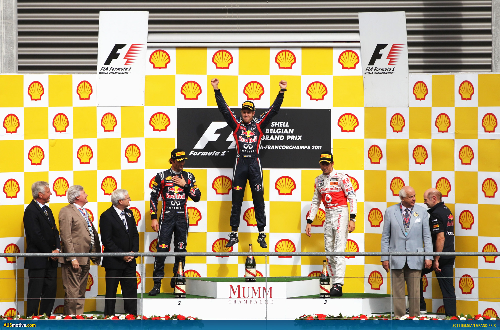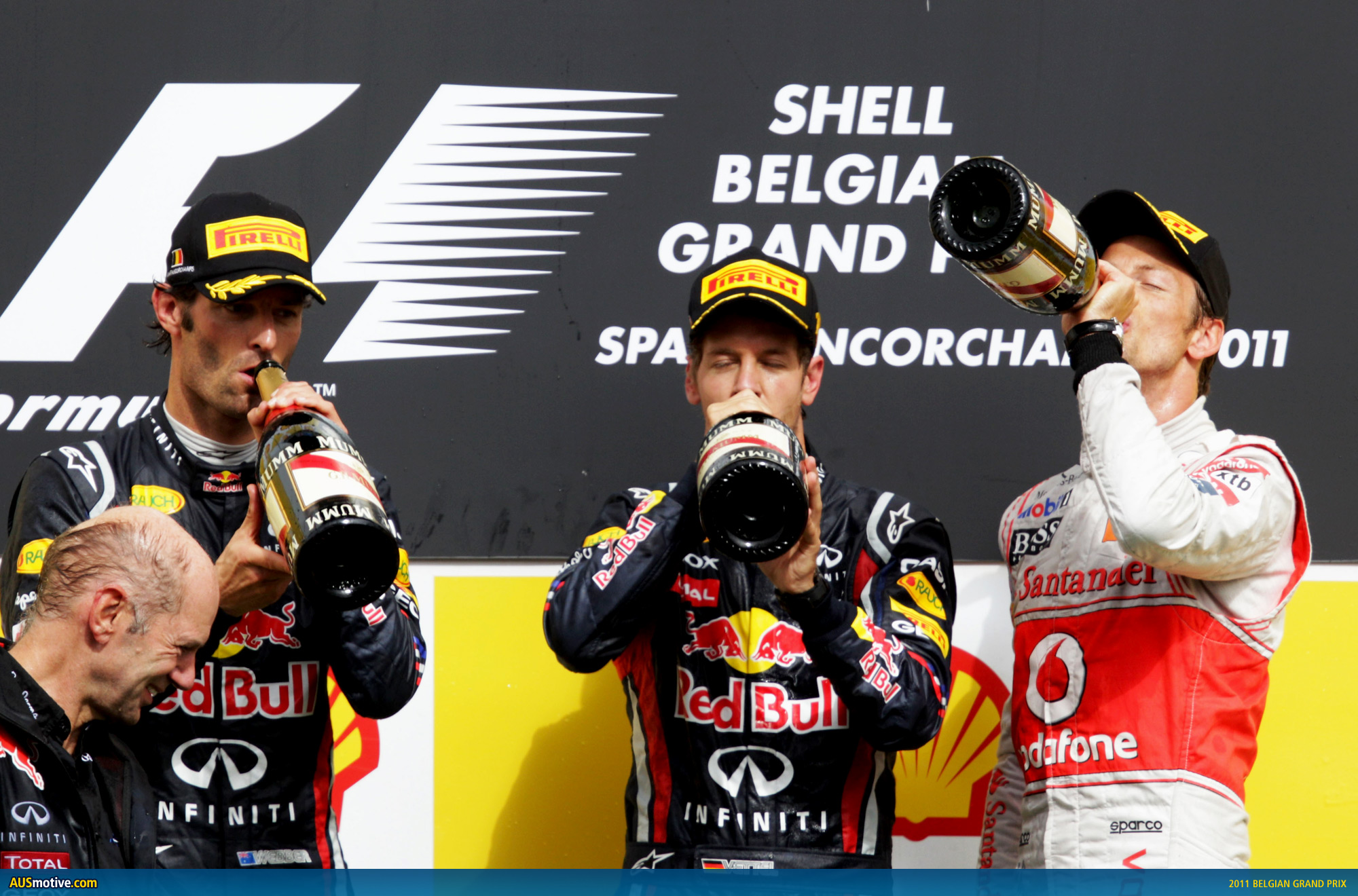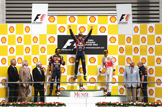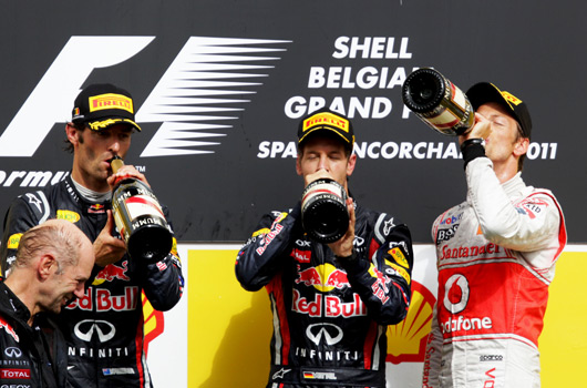 Sebastien Vettel won his and Red Bull Racing’s first Belgian Grand Prix overnight. In doing so he opened up a 92pt lead in the drivers’ championship race on his teammate Mark Webber. Jenson Button (McLaren) put in a sterling effort to finish on the podium after starting from P13.