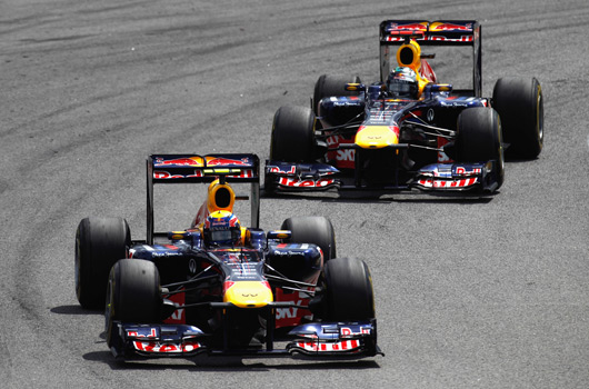 The two Red Bulls were dominant and there was no genuine threat from behind. However, Vettel soon encountered gearbox issues and Webber was able to overtake for the lead on lap 29, where he stayed for the rest of the race. In the end, Webber enjoyed a 16.9 second margin back to his teammate.