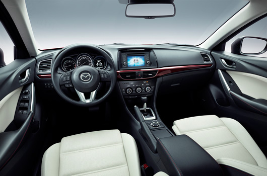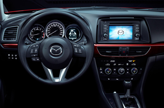 New Mazda6 is the production model born of the Mazda Takeri concept car first showcased at the Tokyo Motor Show in December 2011. “The new Mazda6 has a robust framework and a low, wide stance that expresses strength and stability, creating the impression of amazing vitality, without detracting from the universal aesthetic appeal and beautiful form it displays as a C-D segment car,†says chief designer Akira Tamatani.