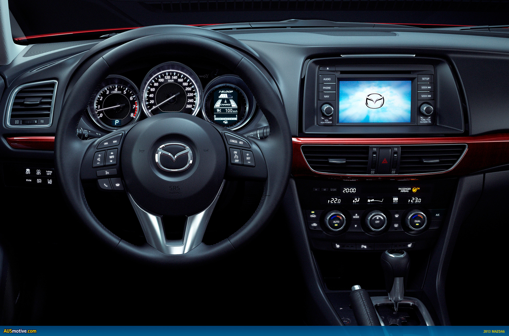You’ll need to start getting used to a new marketing buzzword. Skyactiv and i-stop return from earlier models, but we now must add i-eloop for the brake regeneration system featured in the Mazda6.