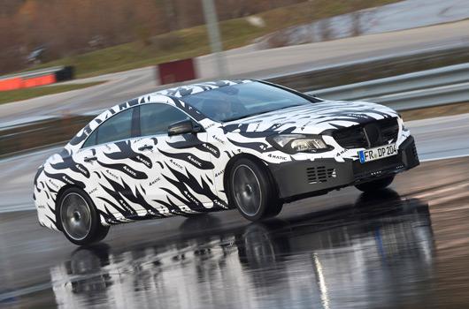 Mercedes-Benz has released details on the 4matic all-wheel drive system it will use in the upcoming CLA four-door coupé, shown here in official spy shot pics. They’ve also gone to the trouble of explaining how a tailored 4matic system will be applied to the cooking CLA 45 AMG model.