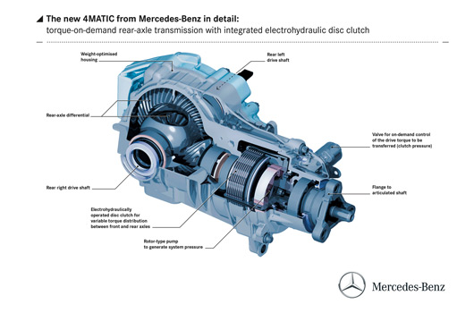 There’s more detail from Mercedes after the break, including some nerdy diagrams showcasing the 4matic’s tricky bits. Really, you have to check it out just so you can discover what an integrated power take-off unit is!