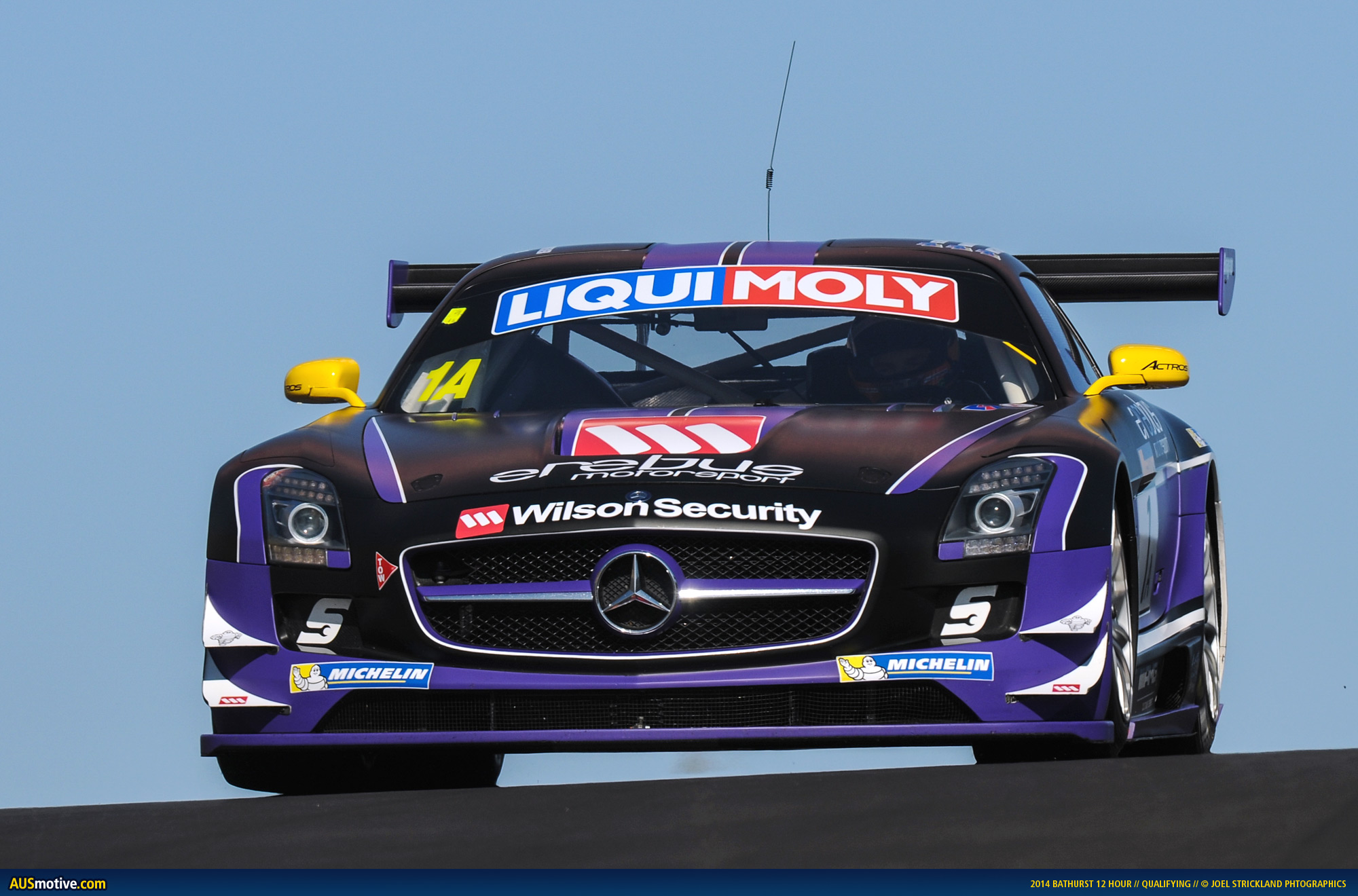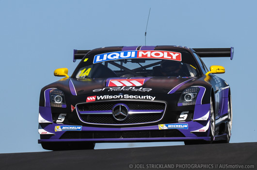 Maro Engel has claimed pole position for the 2014 Bathurst 12 Hour in this afternoon’s Class A-only Qualifying 3 session with an outstanding lap time of 2:03.8586. Engel’s time in the #1 Erebus Mercedes SLS AMG GT3 was 0.0835s faster than Mika Salo’s provisional pole time from this morning.