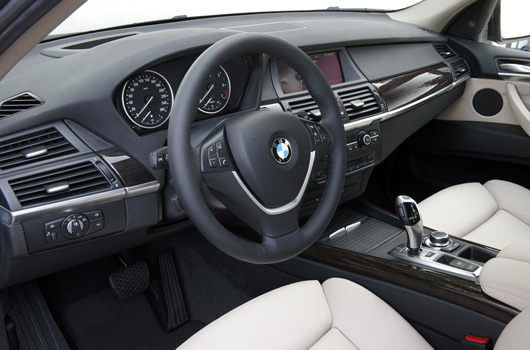 The interior of the new BMW X5 impresses with a high degree of variability and a luxurious ambience. The high seating position permits an optimum view of the current traffic situation with the latest generation of the iDrive control system allowing the convenient and intuitive operation of all standard and optional audio, navigation and telecommunication functions.
