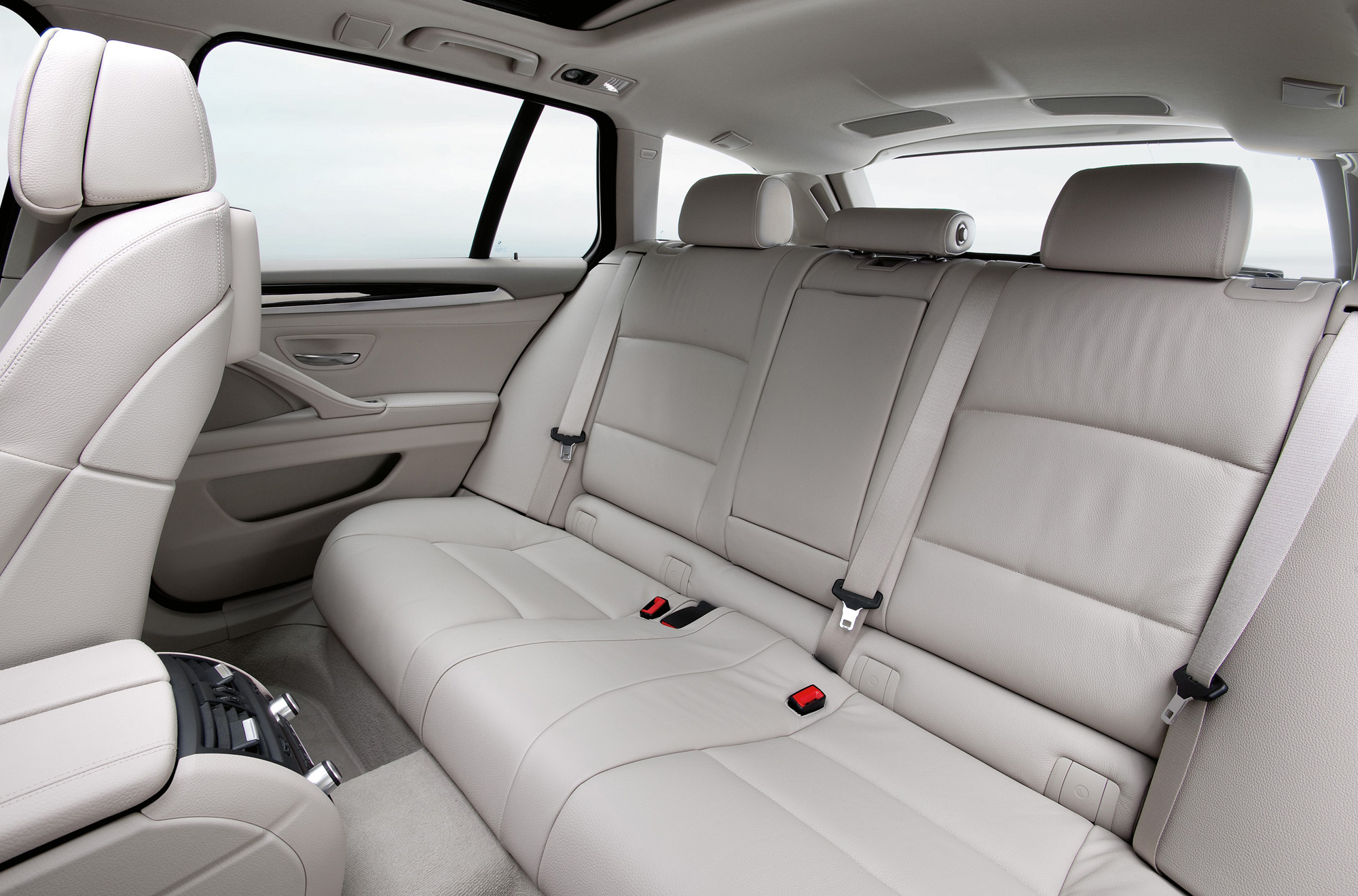 Thanks to a multi-functional interior and intelligent detail solutions, the new BMW 5 Series Touring is fully equipped to meet the most diverse demands. The luggage compartment has a capacity of 560 litres. If desired, an increase in capacity to a maximum of 1,670 litres is guaranteed by 40:20:40 split folding rear seats, which are unique in this segment. The backrest angle is variable by up to 11 degrees. The backrest can be folded down using two control levers inside the luggage compartment, the loading space cover of which is automatically lowered when the tailgate is closed. The separately opening rear window automatically swings upwards at the push of a button.