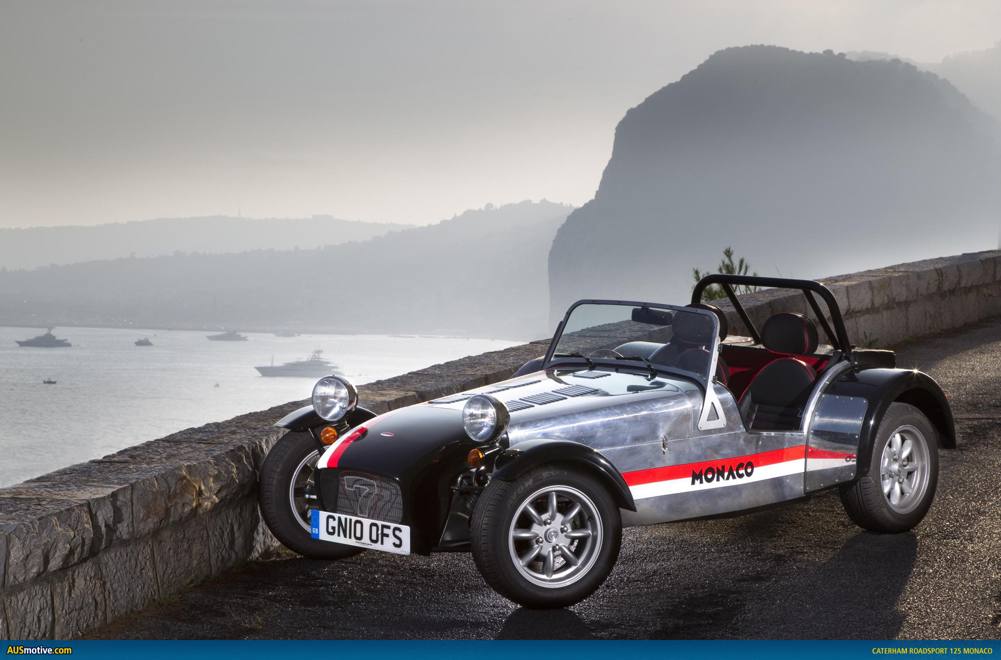 Harking back to the golden era of motorsport, the Monaco features Caterham’s brushed aluminium bodywork, with black nose and wheel guards, while the familiar red and white of the Monegasque flag form a motif that runs the length of the car.