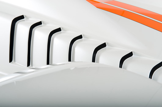 A broad aero platform generates optimal downforce and balance, while the aerodynamic performance is fine-tuned by ducts and dive-planes. The SP/300.R bodywork also features an F1-style raised nose section and sectioned panels, which will help reduce repair costs, ease maintenance and, importantly, allow single-handed removal of body panels track-side.