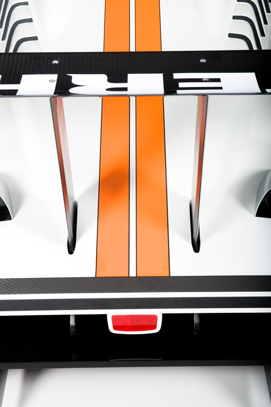 The basic chassis is an aluminium tub with a longitudinally mid-mounted engine, coupled to a stress-bearing rear transaxle. A forward splitter and large rear wing reduce lift, while a flat underbody maximises ground effect benefits.