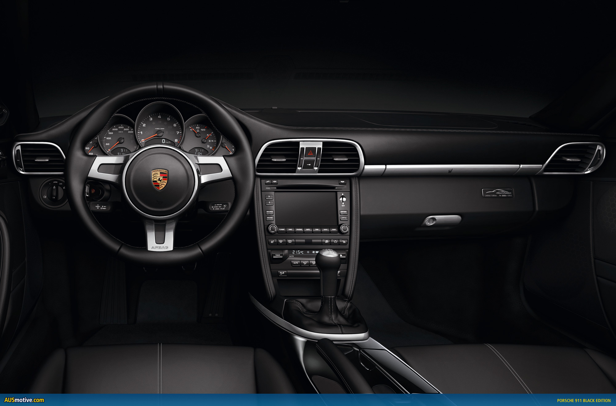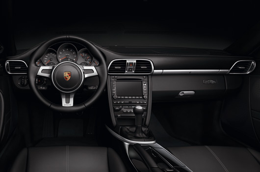 An acoustic highlight of the 911 Black Edition’s enhanced equipment is the BOSE® Surround Sound-System, fitted as standard. It was specially coordinated with the interior of the 911 Carrera models and comprises 13 loudspeakers (twelve in the Cabriolet) including active subwoofer and centre speaker as well as a seven channel digital amplifier with a total output of 385 W for a brilliant sound experience. Coupé and Cabriolet are equipped with the Porsche Communication Management (PCM), as are 911 Carrera models. The GPS navigation module comes as standard in the 911 Black Edition as does the universal audio interface in the central console’s storage compartment. The 911 Black Edition’s enhanced equipment package also includes parking assistant, cruise control, automatic anti-dazzle interior and exterior mirrors and a rain sensor.