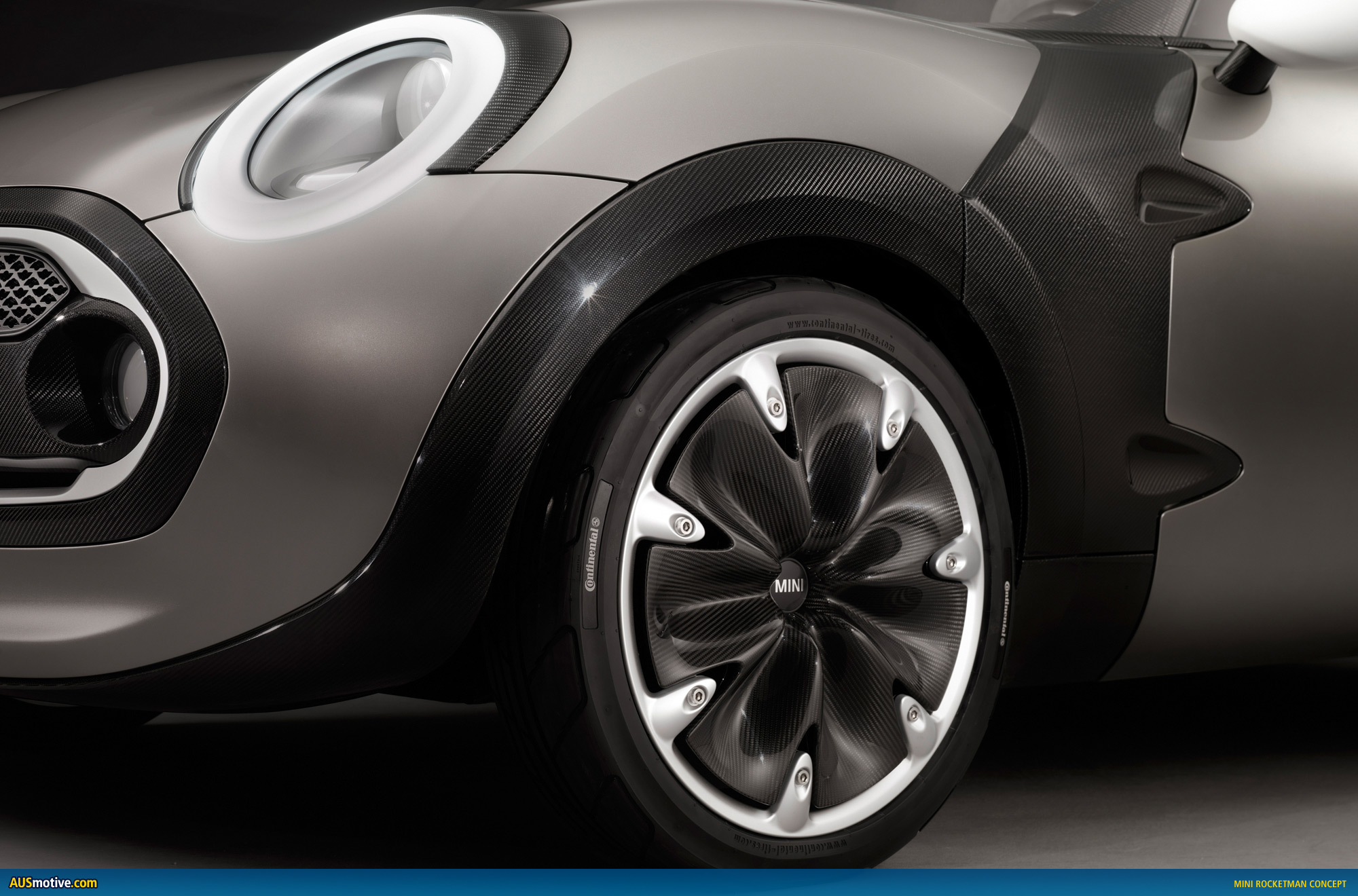 The study’s 18-inch wheels likewise leave no doubt that the sure-footed road-holding and sporty handling properties of a MINI can also play a key role in a car with smaller dimensions. The weight-saving wheels specially developed for the MINI Rocketman Concept have an aerodynamically highly effective, en- closed surface structure. And the carbon wing contour of the directional wheels also helps to reduce drag. An aluminium trim strip on the wheel rim adds an attractive stylistic touch.