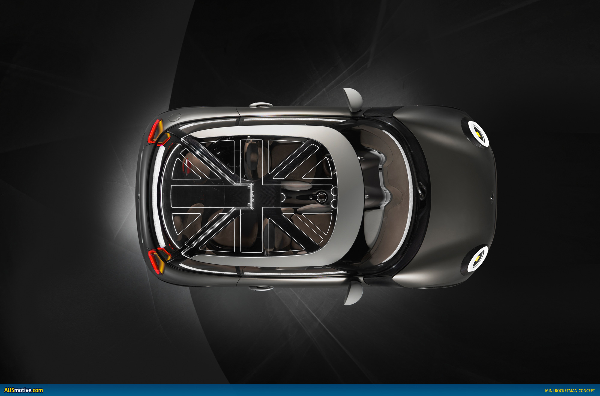 The roof of the MINI Rocketman Concept also puts on an extraordinary light show. The full-surface glass roof is segmented by illuminated braces to recre-ate the look of Britain’s Union Jack flag. When not illuminated, the longitudinal, horizontal and diagonal braces glow a bright Porcelain White. In darkness the integrated optical fibres give the interior of the MINI Rocketman Concept a pleasantly indirect illumination and, as a result, a more effective nocturnal ap-pearance.