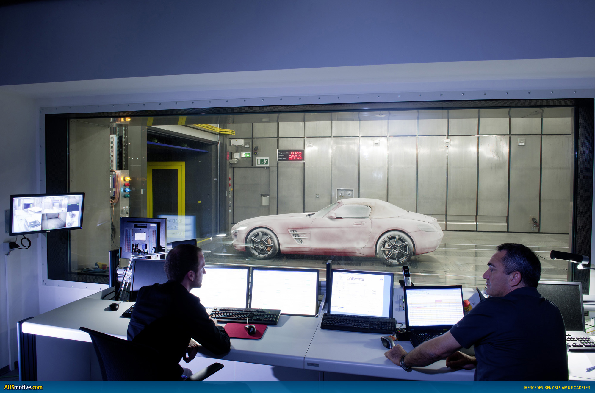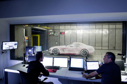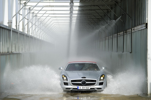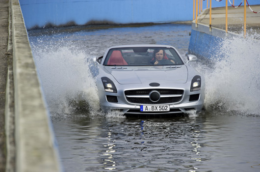 The latest simulation software and extensive test drives on all continents make the 420 kW (571 hp) Roadster fit for its market launch in autumn 2011. The focus of the specialists in Affalterbach was particularly on bodyshell rigidity, handling dynamics, the soft top and NVH (Noise, Vibration and Harshness).
