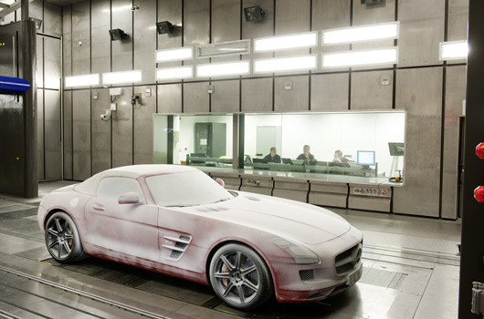 In addition to various test facilities such as the water chamber and the climate/ wind tunnel, the AMG specialists have recourse to test drives in all climatic regions of the world, where problems can be identified and solutions sought. In Laredo, Texas, for example, there is a particularly fine dust which finds its way into practically any gap – and tests the seals to the absolute limit.