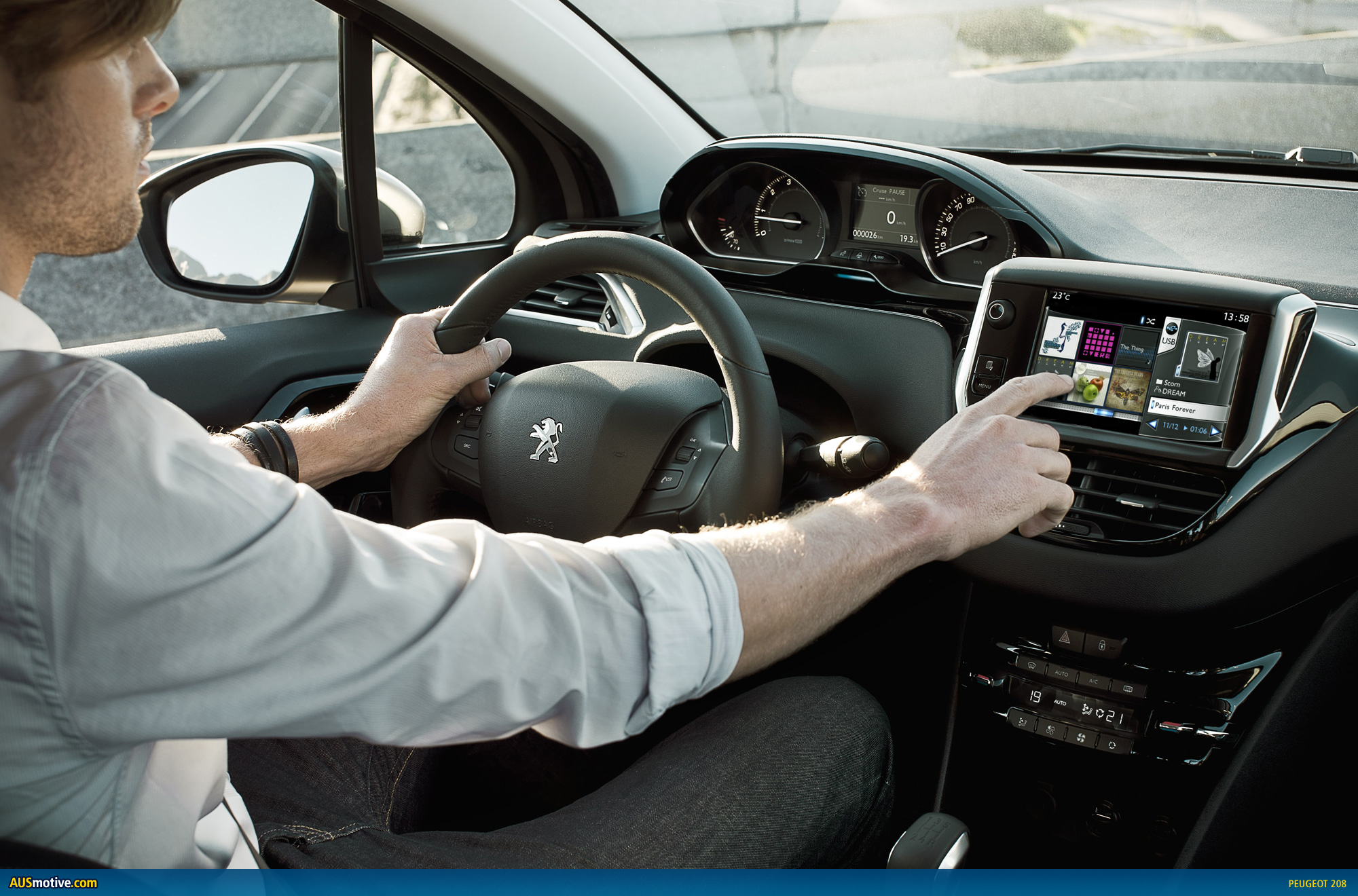 Inside, we’ve been given brief glimpse. We can see the 208 looks the part and has a nice level of finish. Although, we do wonder if its HVAC controls may be a bit awkward to use, placed under the dash above as they are.