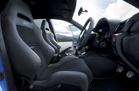 In the exclusively-made engine, the weight balance between piston, connecting rod, and crankshaft is optimized to enhance the rev feel. Along with a ball bearing turbocharger, ECU (Engine Control Unit) with STI tuning, and a sports muffler with lowered back pressure exhaust – all of which were designed for this model – the engine can deliver 235kW (320PS) in maximum output and 431N.m (44kg.m) in maximum torque. The accelerator response is heightened and low to mid range torque increased, thereby offering better driveability.