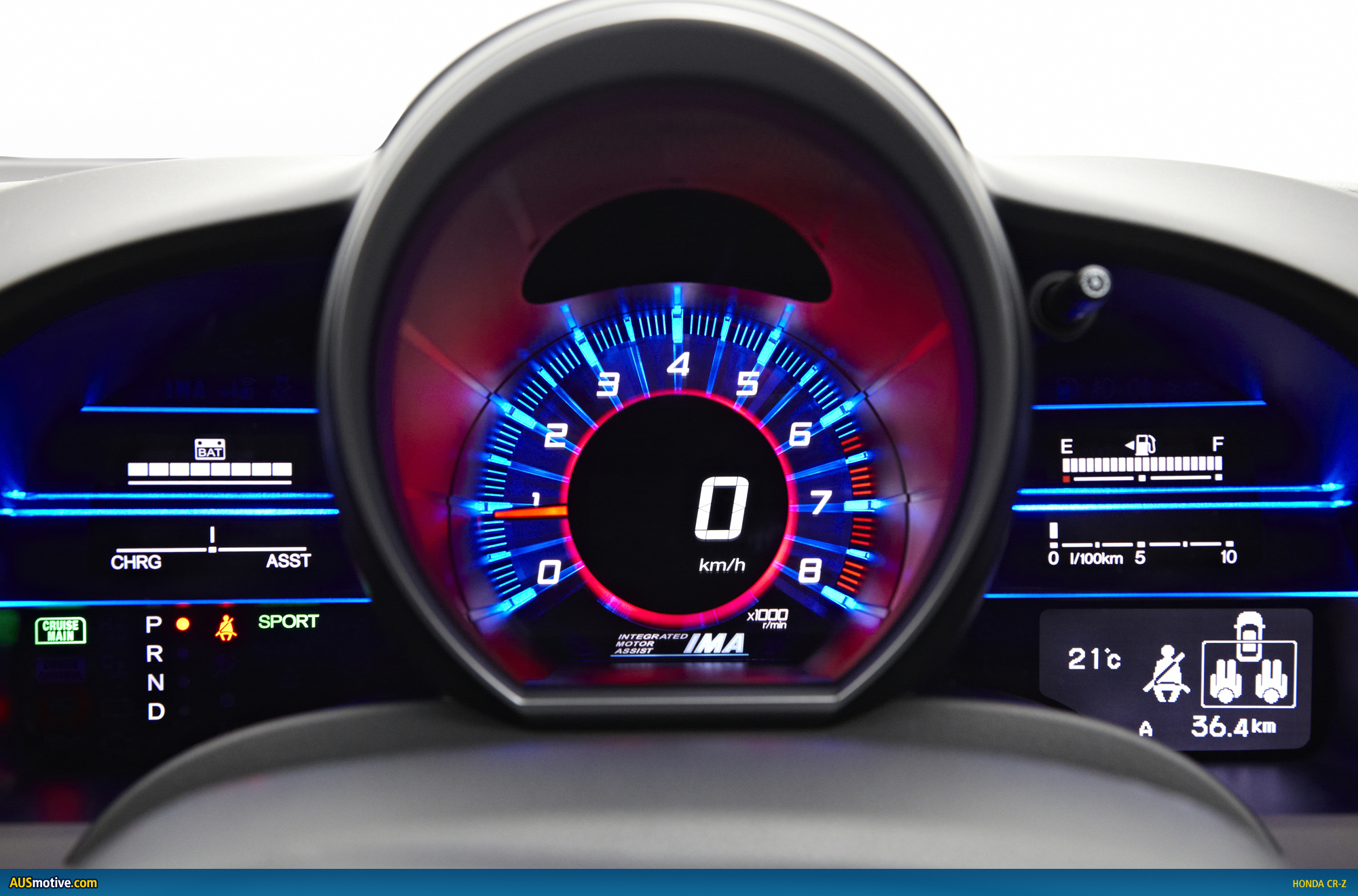 Offering a unique 3-Mode Drive System, the CR-Z can be adjusted to your needs, with NORMAL mode suited to most driving experiences. SPORT mode sharpens the throttle response and changes the parameters of the IMA system to provide more electric motor assistance and secure, solid steering. ECON mode prioritises fuel economy in the operation of the drive-by-wire throttle, ECU, air conditioning and the hybrid system. The Eco Assist function, in conjunction with ECON or NORMAL mode, enables the driver to monitor their fuel efficiency on each journey.