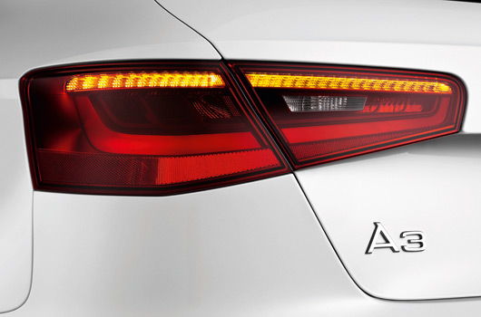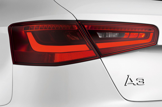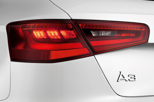 Styling at the rear with the spoiler edge above the diffuser emphasises the width of the new premium compact. The split tail lights – featuring LED technology where xenon plus headlights are fitted – show a variation on the inner architecture of the front headlights. The tailgate has a sculpted, three-dimensional look. The new A3 sports either one or two tailpipes on the left side in its diffuser insert, depending on the engine type.