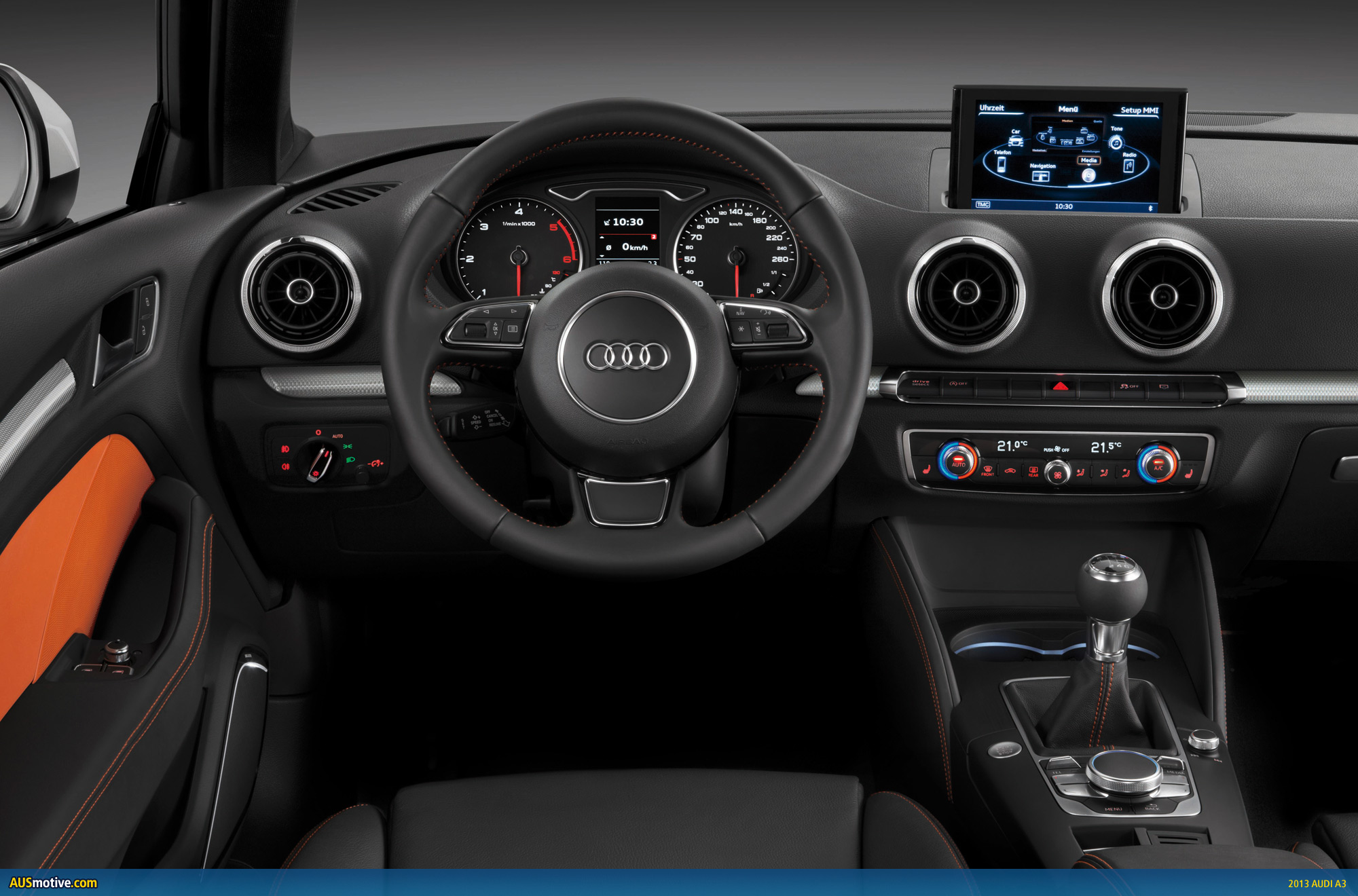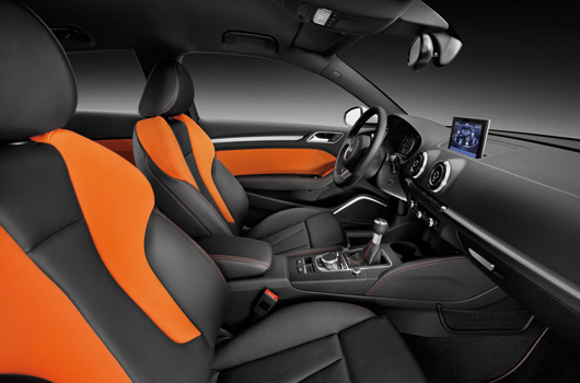 The first class impression conveyed by the interior of the new A3 is a reflection of stringent Audi quality standards. It is finished in more traditional black or titanium grey, but will also be available in bolder colours such as pashmina beige, chestnut brown and capri orange. There are upholstery options in different qualities of leather and a leather/Alcantara variant.