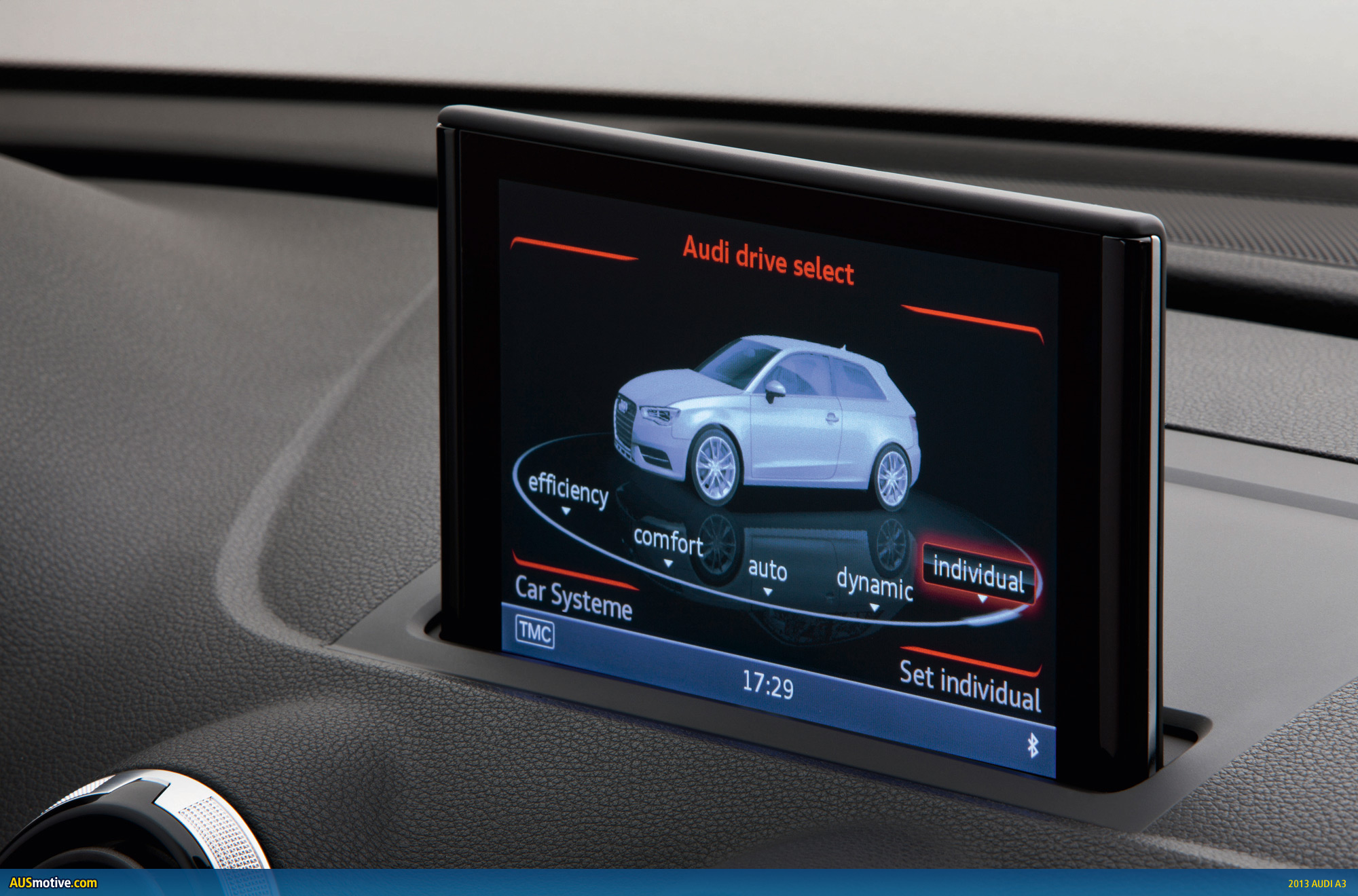 The new A3 is also available for the first time with the Audi drive select vehicle dynamics system, which interfaces with the accelerator pedal, power steering and S tronic transmission. At the touch of a button, the system can change the operating parameters of these features between comfort, auto, dynamic, individual or efficiency modes. In the latter, the electronic climate control and adaptive cruise control systems are set at a level which maximises fuel economy.