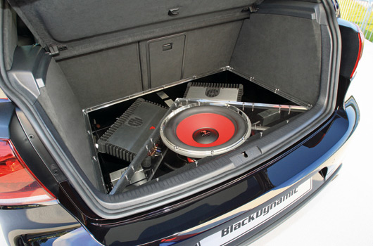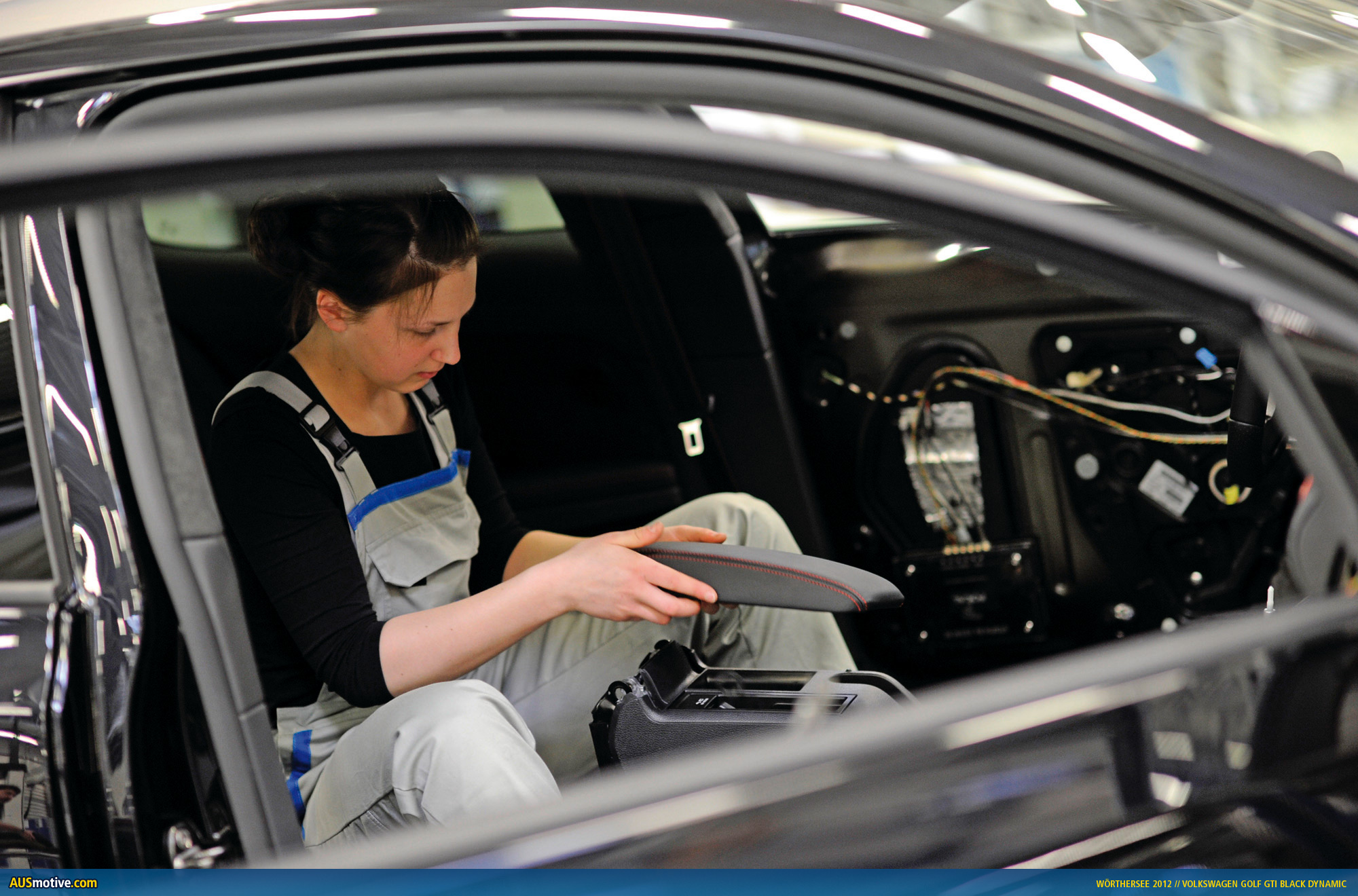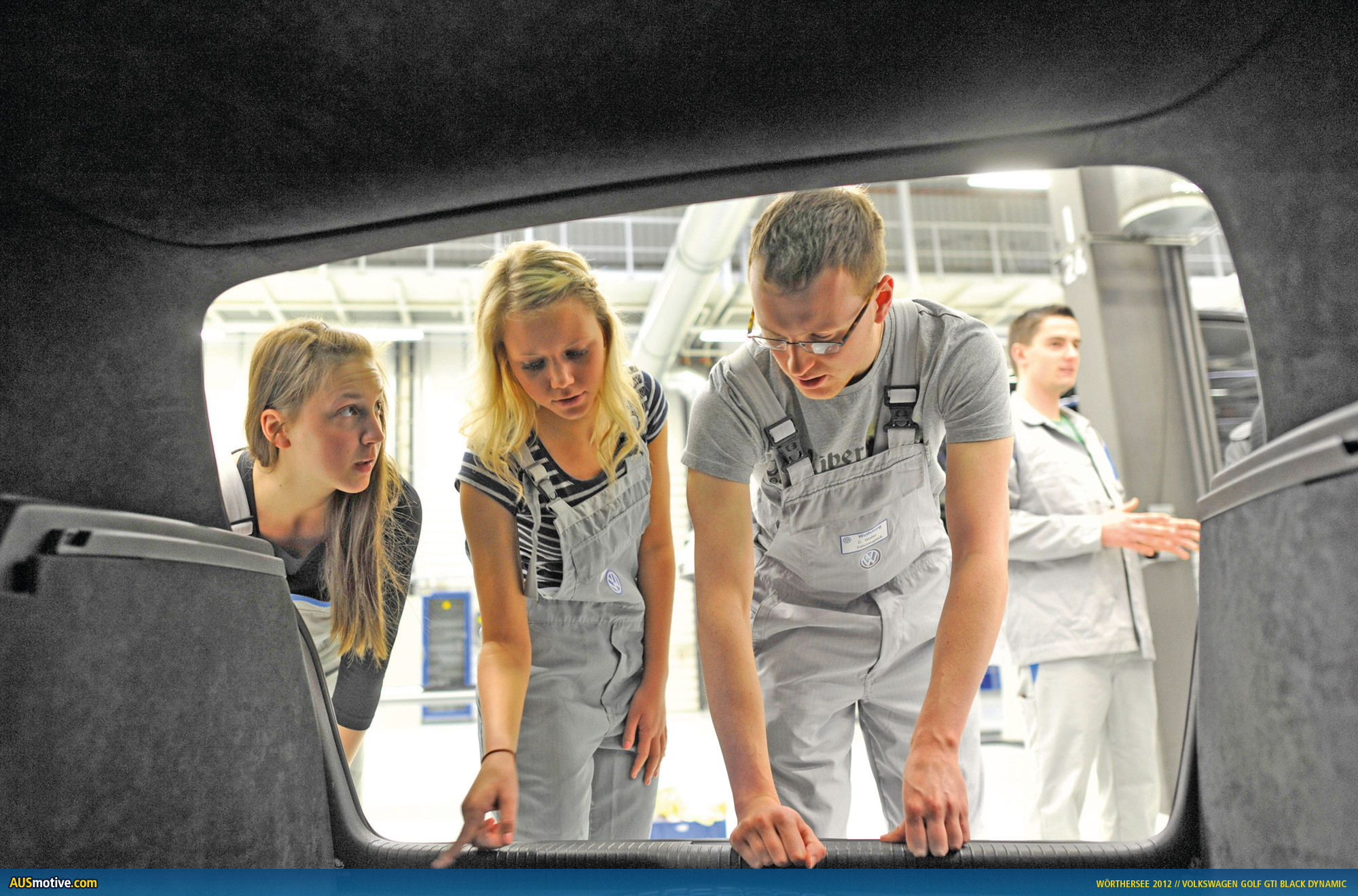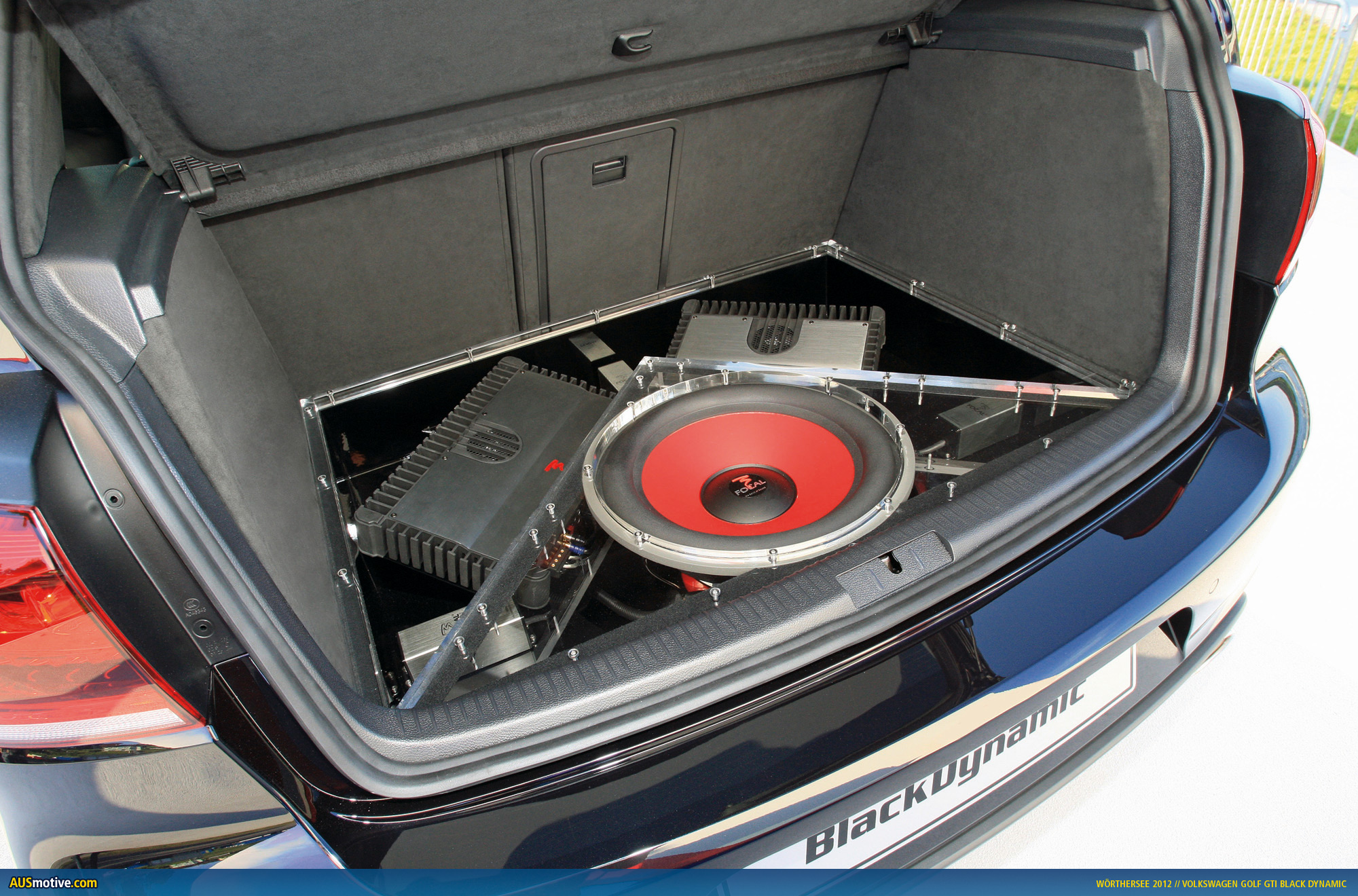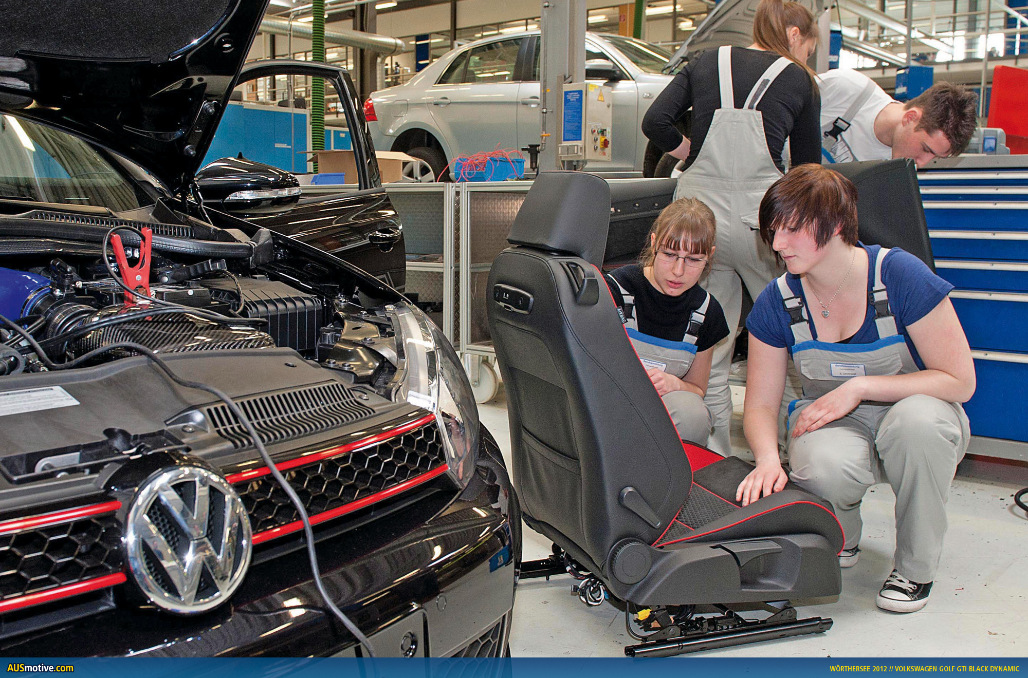 Wolfsburg / Reifnitz, 17 May 2012 – Black as the night, with a black-and-red interior, 360 PS (265 kW) TSI engine and a lowered sport suspension, the GTI Black Dynamic makes a lasting impression. Nine Volkswagen apprentices from four professions produced this custom Golf in only seven months. One of the special features: GTI lettering in the doors and hatch with handmade characters. Another highlight is the 1,800 watt sound system installed in the boot and visible beneath a specially manufactured plexiglas sheet, with nine loudspeakers. The team of four women and five men between the ages of 18 and 23 chose the motto “sporty driving” for the customisation of the production GTI.