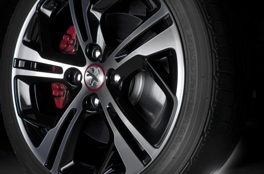 Agile and reactive, the 208 GTi balances from one turn to the next with complete precision. Controlled by the steering, the settings of which have been revised to increase firmness, the front suspension returns the information perfectly and responsively. The rear suspension is also well tuned for safe and involved driving. Fitted with 205/45 tyres, the 17″ diamond Carbon wheels, with Storm paint and matt varnish, house 302mm ventilated discs at the front and 249mm at the rear. Cooled by dynamic air intakes, they provide controlled and incisive braking.