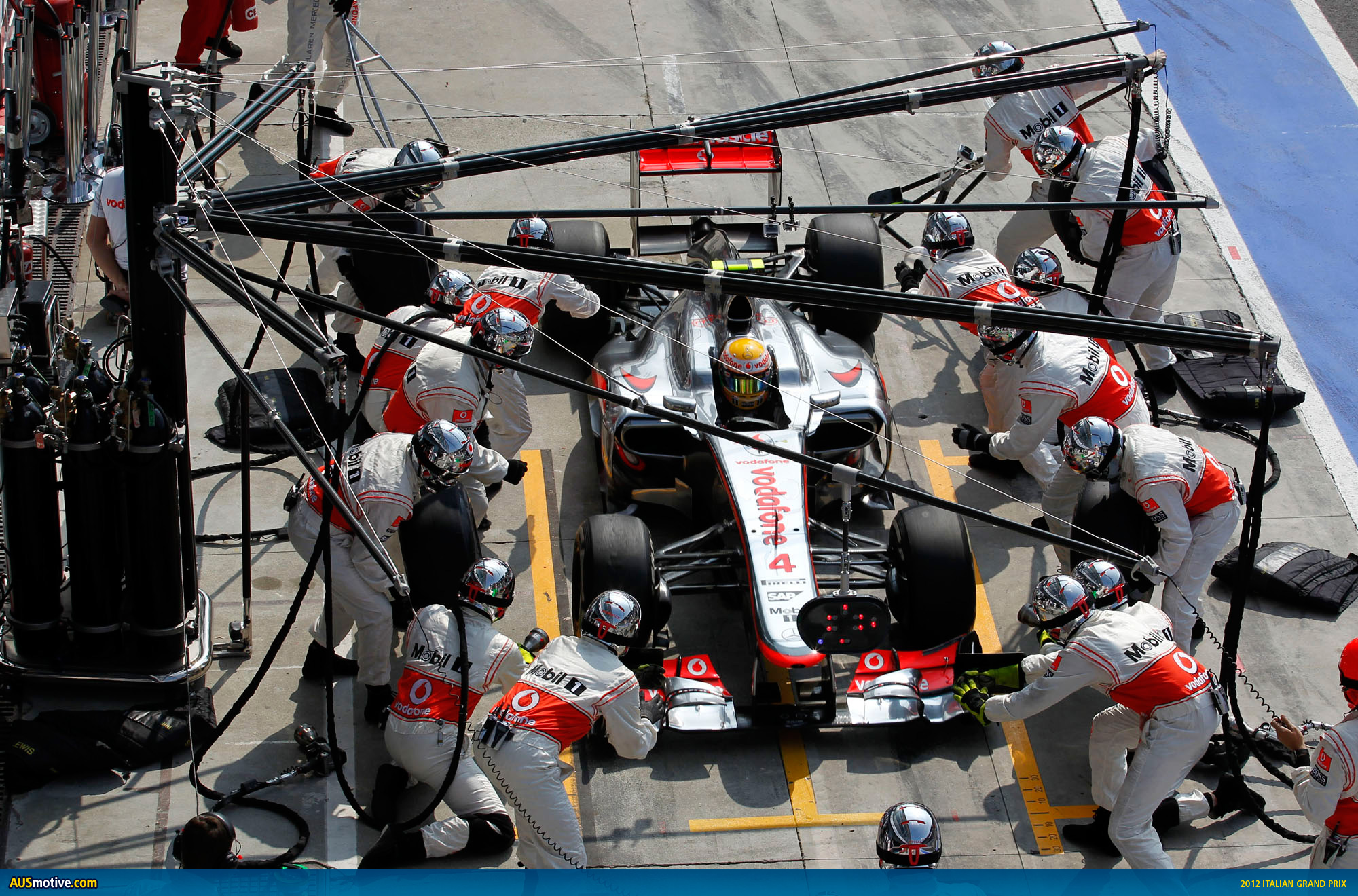 Today we bring you over 100 photos from the 2012 Italian Grand Prix, won by Lewis Hamilton. Given the alarming rate at which Sebastian Vettel has chalked up F1 victories—he currently has 22 from 94 starts—it was a bit of a surprise to learn the win in Monza is only Hamilton’s 2oth (from 103 starts).