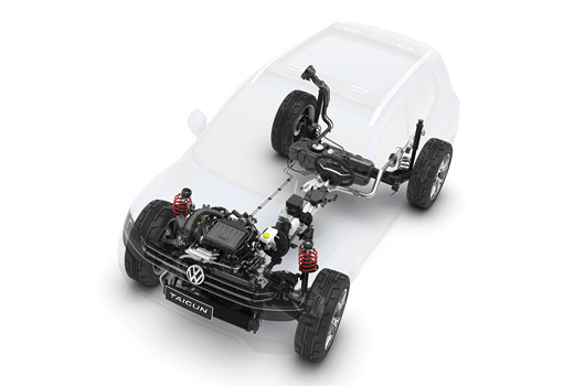 The Taigun, which is equipped with 17-inch alloy wheels and size 205/50 R17 tyres, is also adept at handling offroad terrain thanks to its high engine torque and high ground clearance. Also providing a plus in active safety is the ESC electronic stabilisation programme.