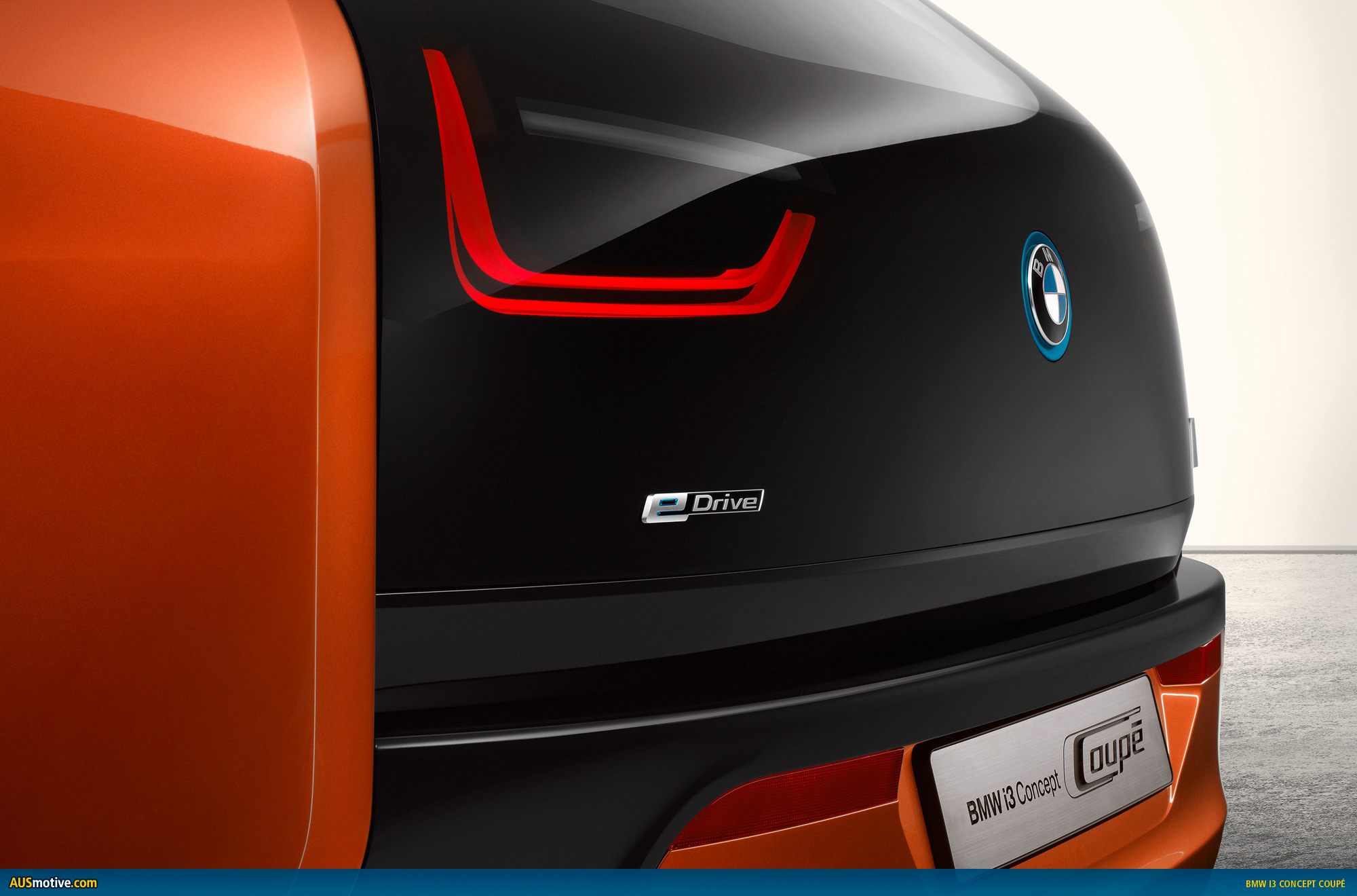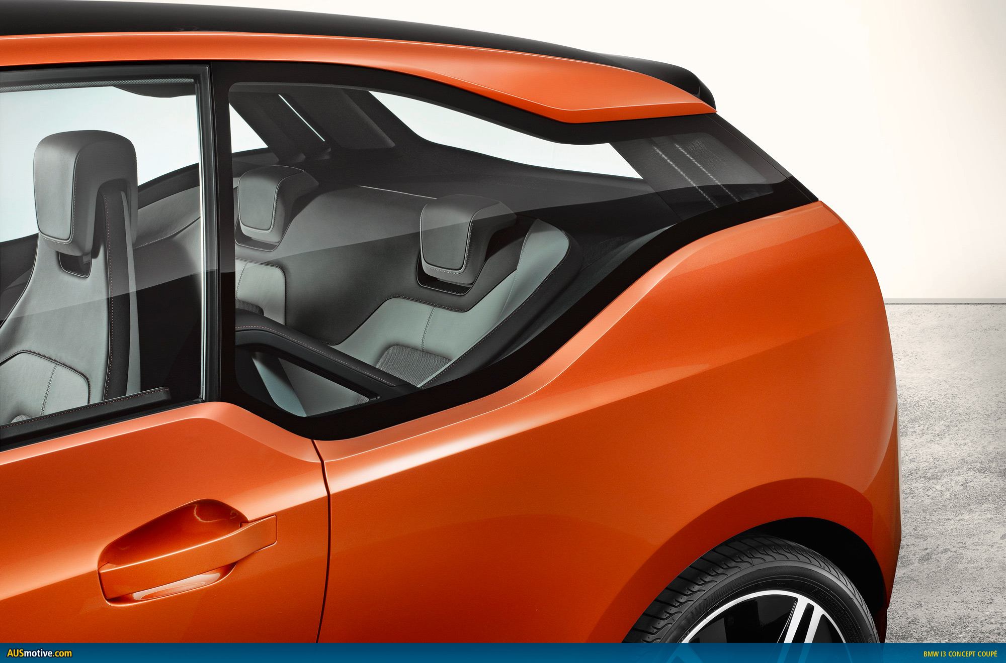 The bodywork panels around the wheel arches, doors and rear sidewalls are painted in Solar Orange metallic, a warm shade bursting with energy that was created especially for the BMW i3 Concept Coupe. It forms an electrifying contrast with the high-gloss black finish on the bonnet, roof and boot lid, as well as with the body’s black lower edge.