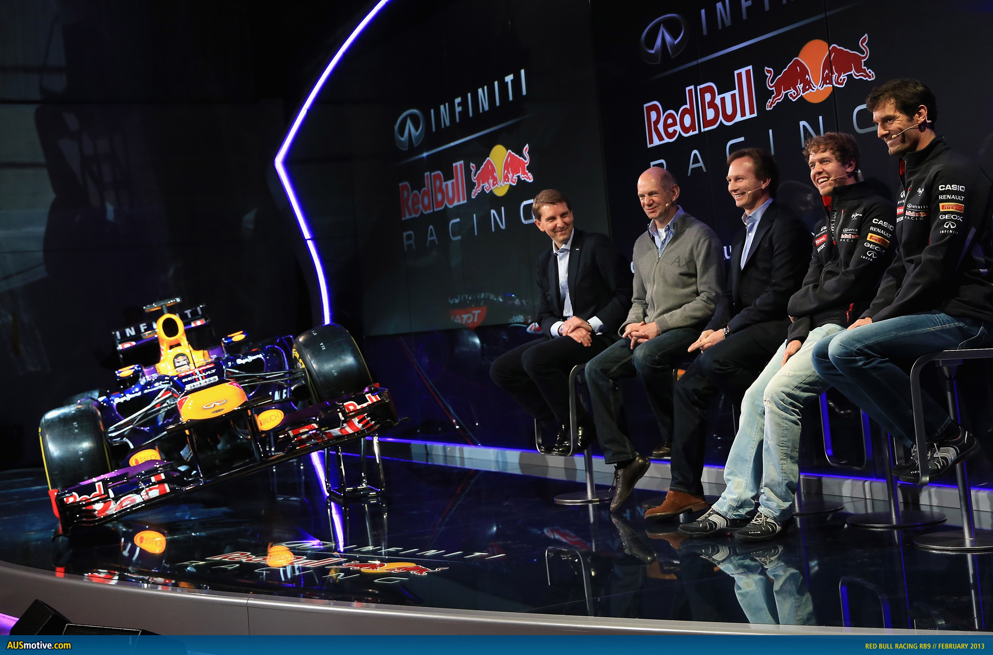Nine times grand prix winner Mark and triple World Champion Sebastian were joined on stage by team principal Christian Horner, chief technical officer Adrian Newey and corporate vice president global marketing communications representing Infiniti, Simon Sproule.