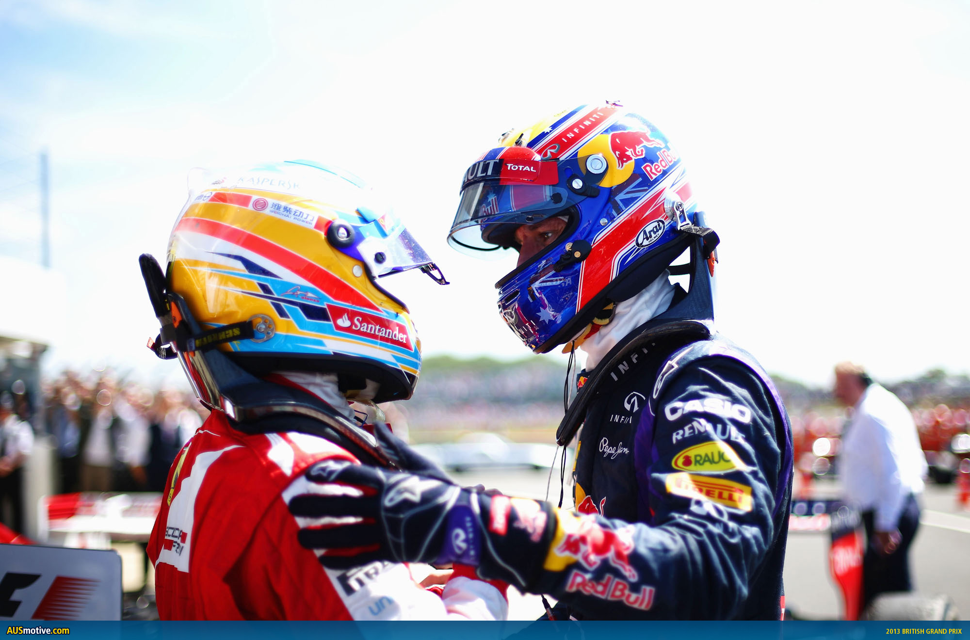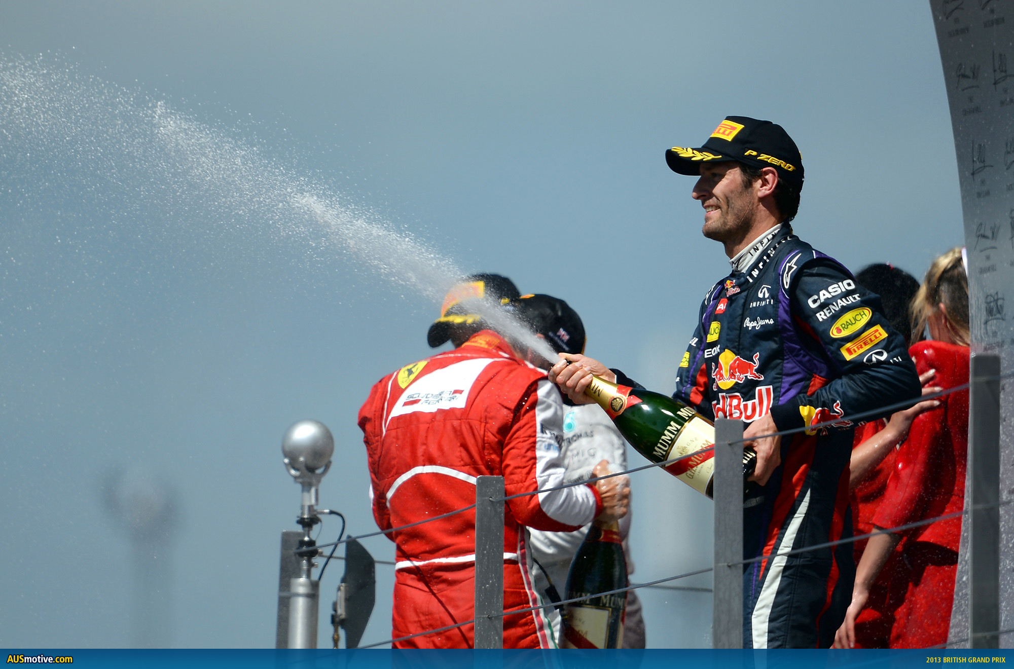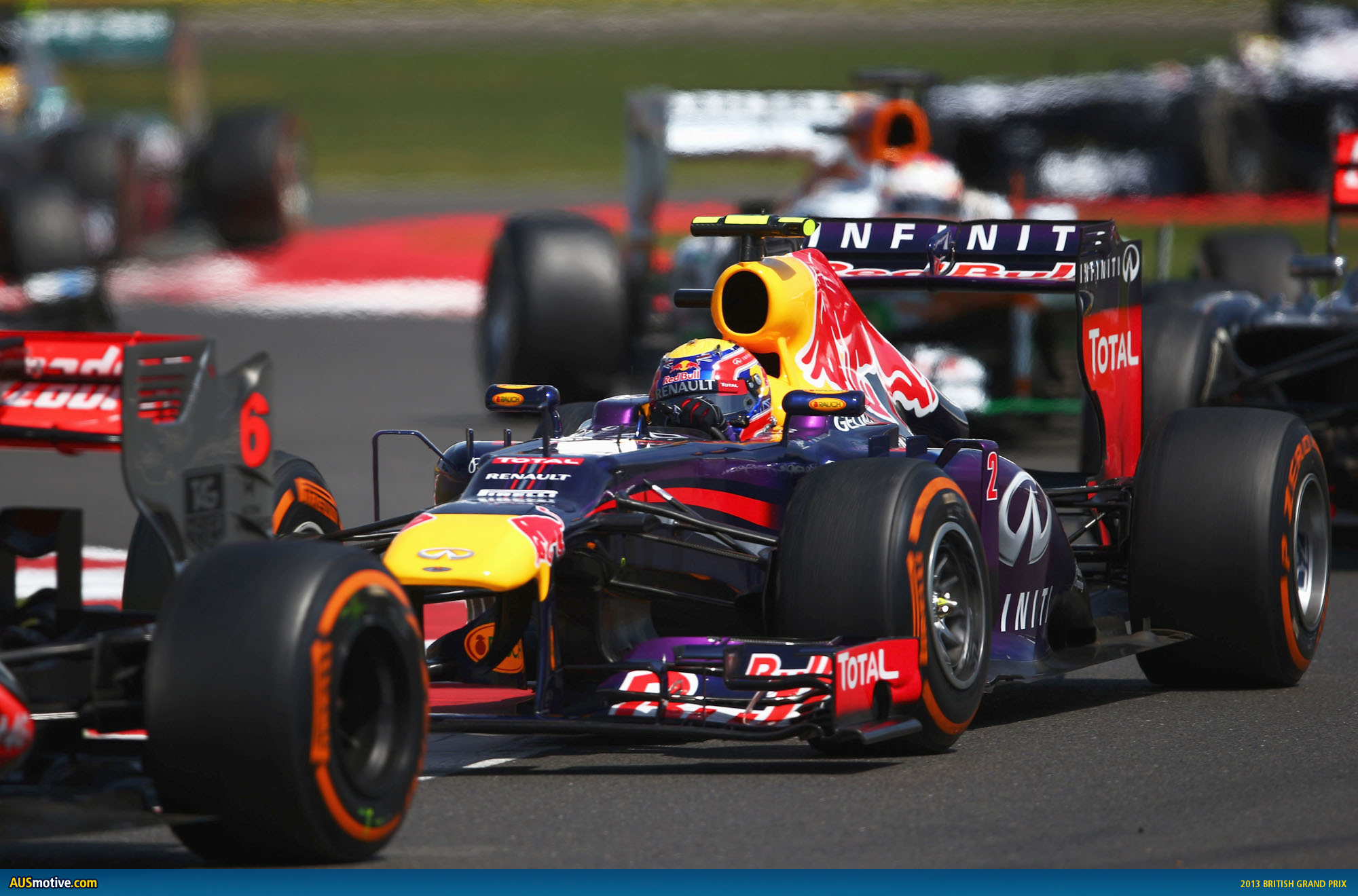 Here’s your pics from an epic British Grand Prix at Silverstone. If not for a customary dodgy start we may have been looking at Mark Webber with hands raised in triumph in the photo above. Instead Mark almost won, on the back of a gutsy recovery effort.