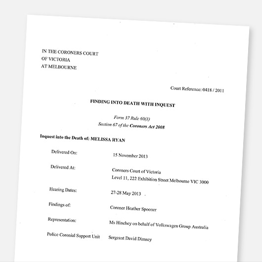 One reply on “Victorian Coroner clears Volkswagen in Ryan case”