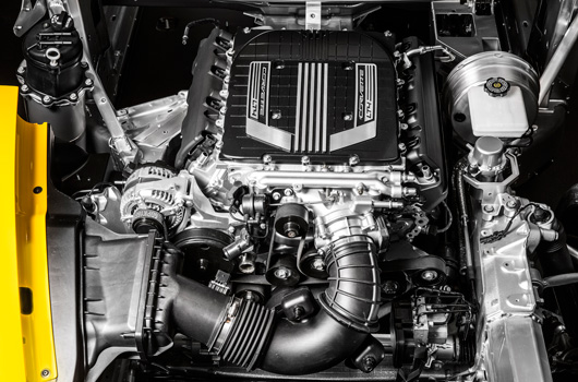 The 2015 model is the first Corvette Z06 to offer a supercharged engine, an automatic transmission and, thanks to a stronger aluminum frame, a removable roof panel. The new, supercharged 6.2L engine is expected to deliver at least 625 horsepower (466 kW), and can be matched with either a seven-speed manual or an all-new, high-performance eight-speed automatic transmission with paddle shifters for manual control. The aluminum frame carries over from the Corvette Stingray and will be used essentially unchanged for the Corvette Racing C7.R.
