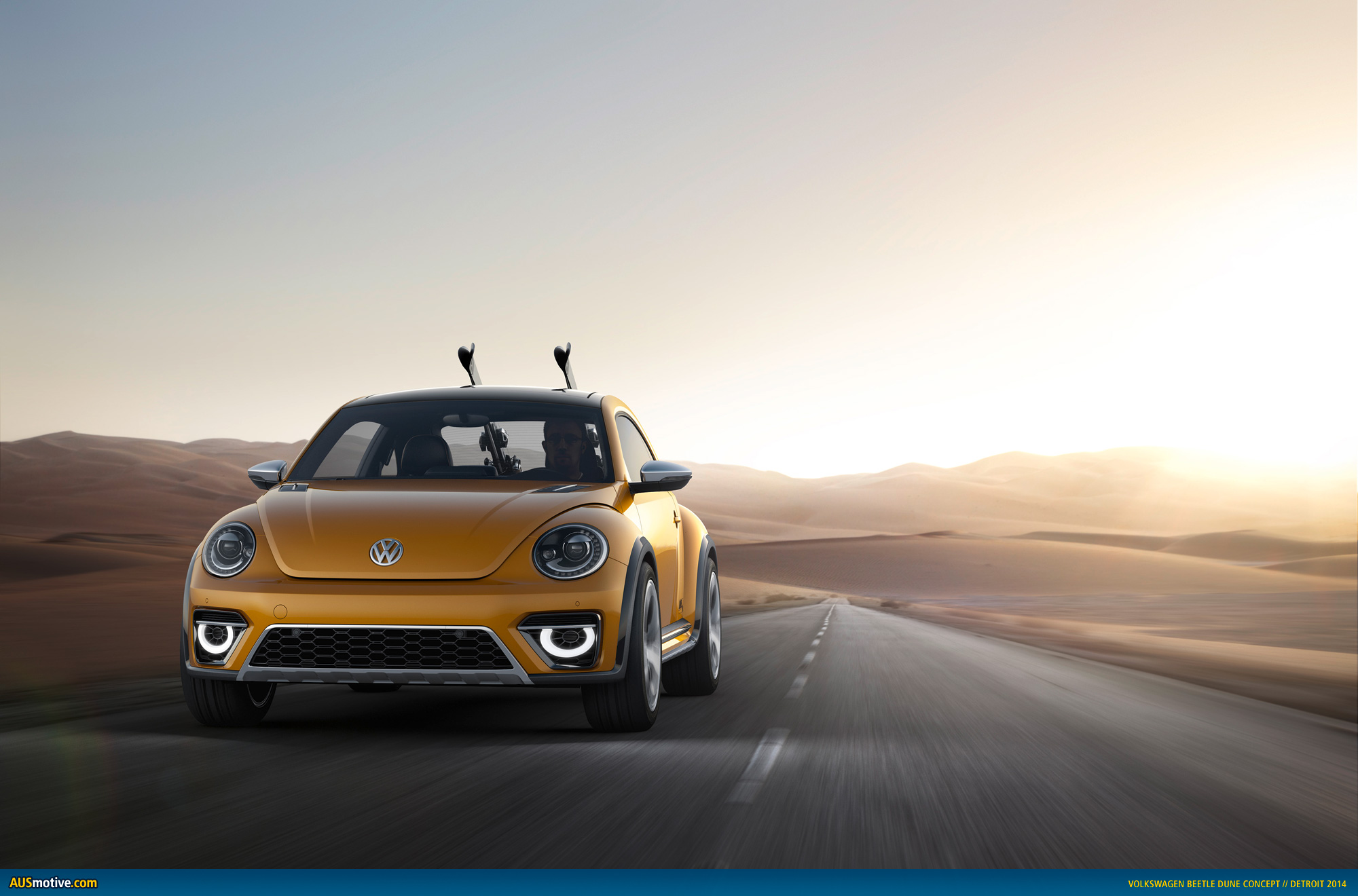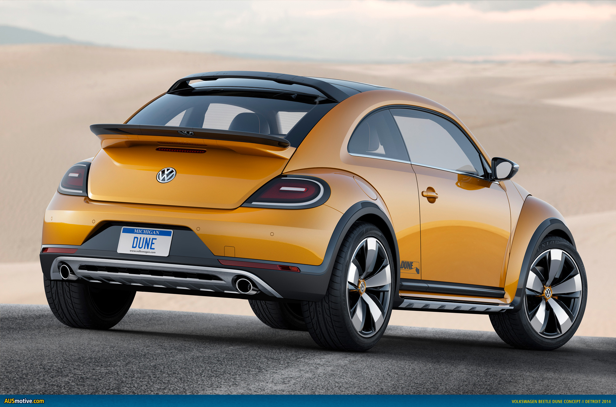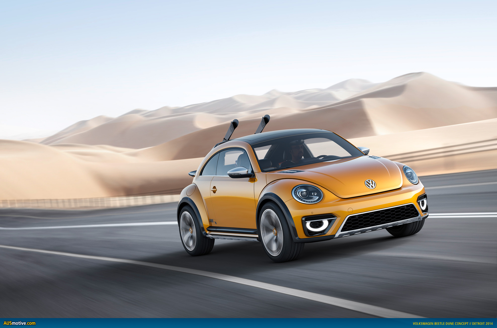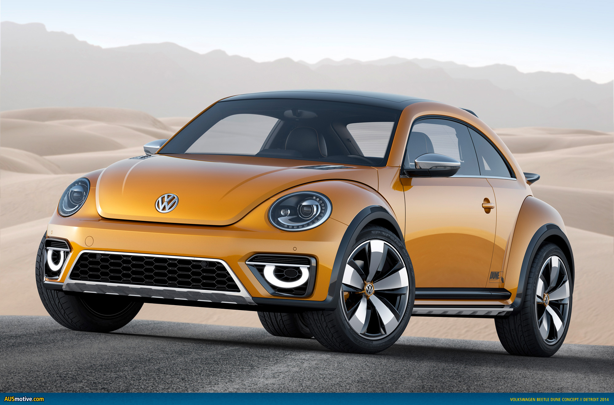 Wolfsburg / Detroit, 13 January 2014. The Beetle is a phenomenon, regardless of where it shows up in the world. People are always happy to see this car. Whether in wintry Detroit, sunny San Francisco or venerable Boston – the streets are more colorful with the Beetle, and life is more carefree. The same happens in Europe, in pulsing Berlin and in rocking London, as well as in Asian metropolises such as exuberant Tokyo and the eternally exotic Hong Kong, and cities in the southern hemisphere such as Sydney and Cape Town. The Beetle. As a coupé and convertible. The greater the numbers of this design icon that populate the streets, the more intense is this phenomenon of likeability. Now Volkswagen is adding a new version: with the world premiere of the Beetle Dune. It is being presented at the North American International Auto Show in Detroit (January 13 to 26). A Beetle with a wide, cool and rugged offroad look; a car outside of the mainstream. The Beetle Dune.