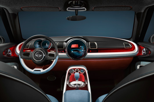 Along with the exterior, the interior of the MINI Clubman Concept has also grown to larger dimensions. With four doors and five fully-fledged seats, the MINI Clubman Concept offers plenty of space for the pursuit of an active lifestyle.